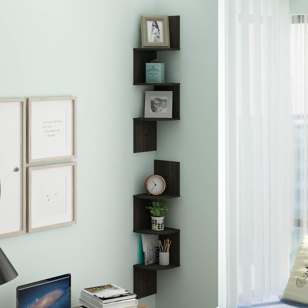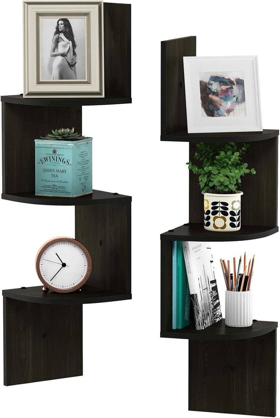 Furinno Rossi 3-stufiges Wandregal-Set, 2er-Set, holz, Espresso, 19.81 x 19.81 x 82.55 cm 19.81 x 19