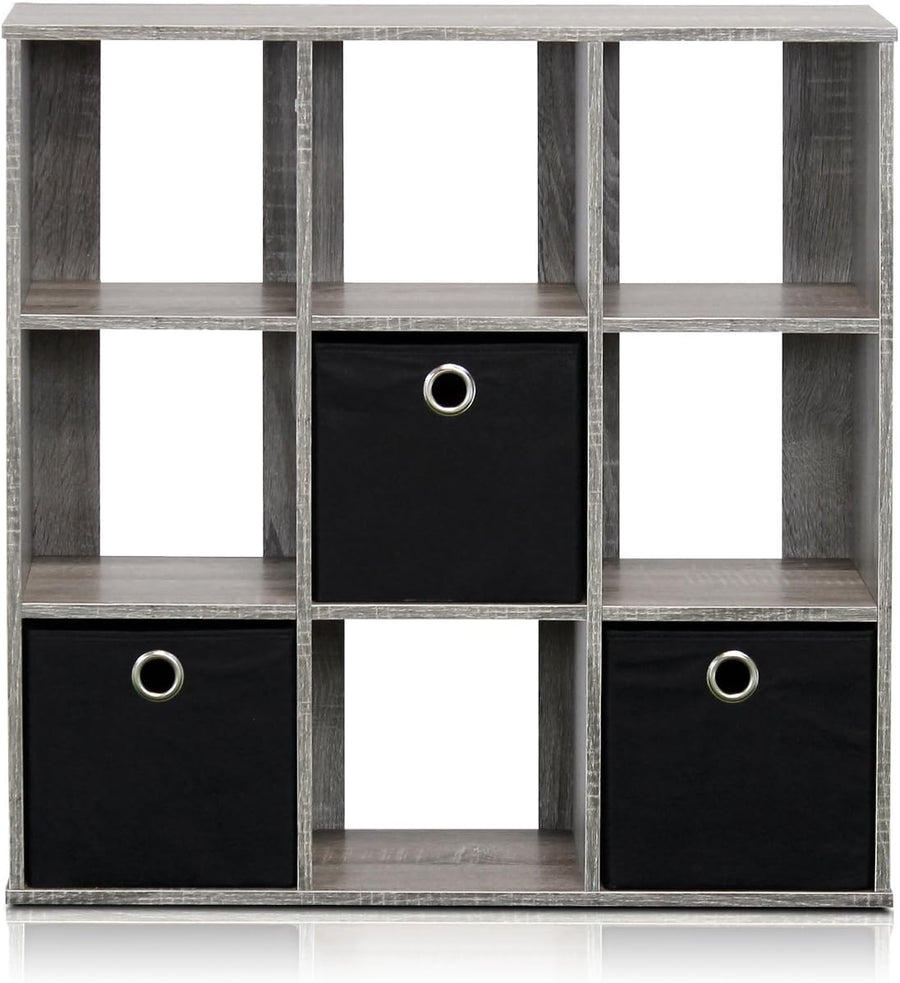 Furinno Simplistic Organizer/Regal mit 9 Fächern und 3 Einschüben, holz, Grau/schwarz, 20.07 x 67.82