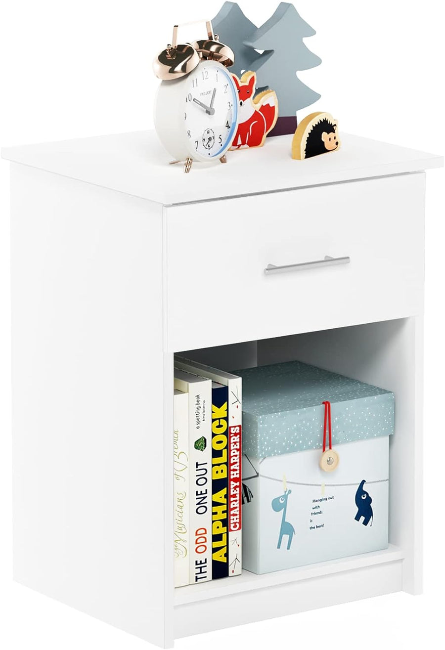 Furinno Tidur Nachttisch, Holz, Reines Weiss, 1-Pack Handle
