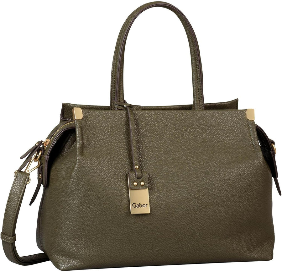 Gabor bags Gela Damen Shopper Umhängetasche Reissverschluss Beige 35x13,5x24 Oliv, 35x13,5x24 Oliv