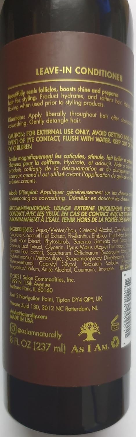 As I Am Naturally | Co-Wash mit Kokosnuss, 454 g | Leave-In-Spülung, 237 ml | Lockengel, 227 g | 3er