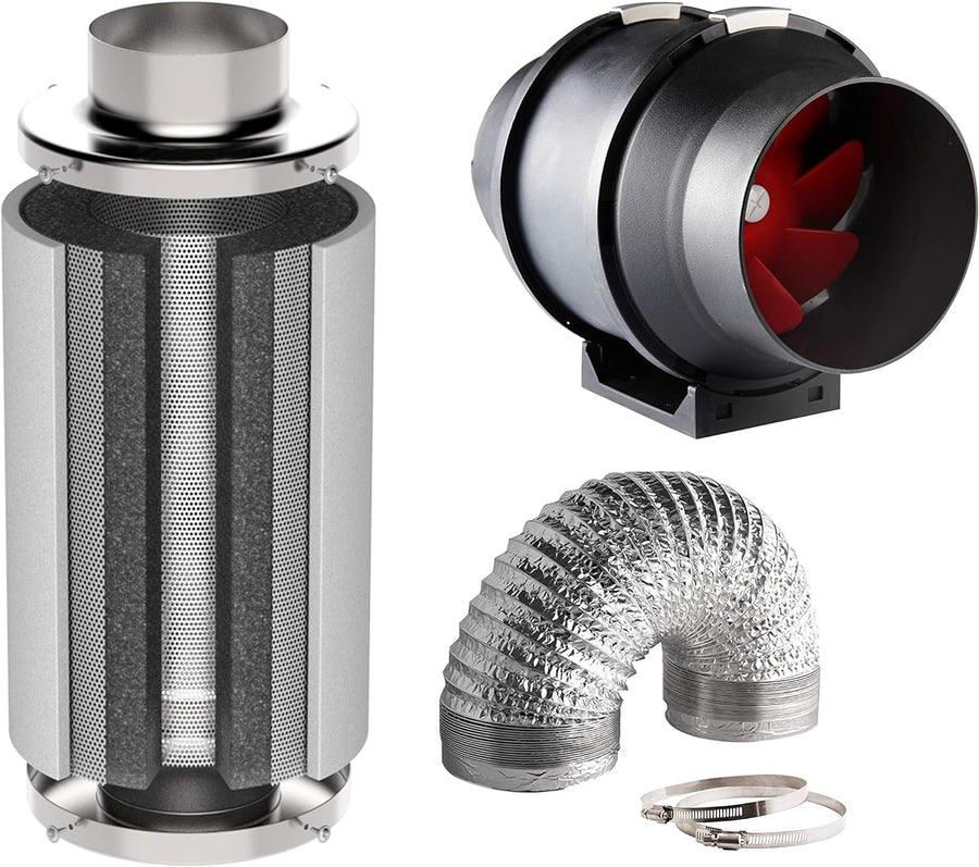 Abluft Set Lüftung 580m³/h mit Premium Aktivkohle Filter 150 x 500 mm 850m³/h Klima Grow