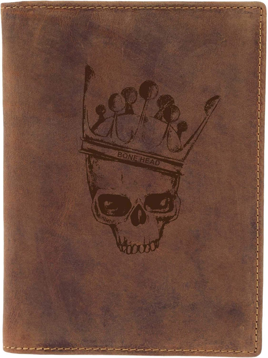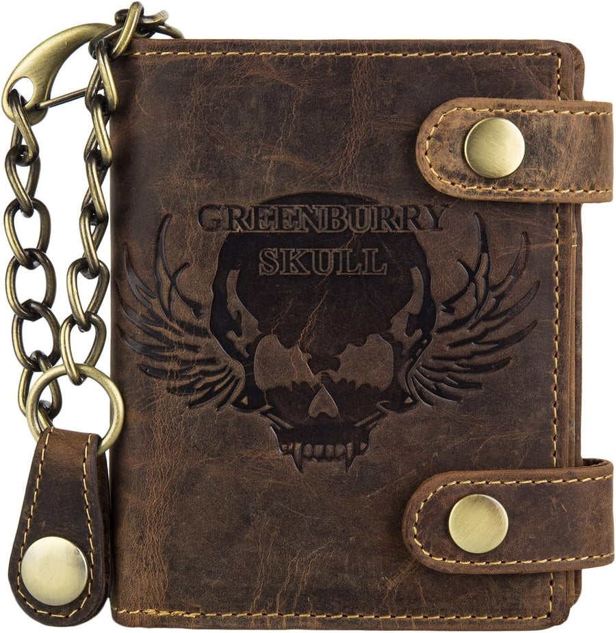 Greenburry Leder Biker-Ausweismappe mit Totenkopf - Führerscheinmappe - Trucker-Ausweistasche Skull