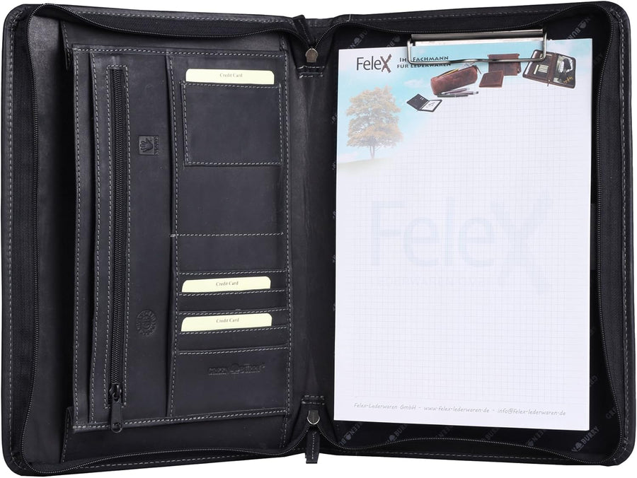 Greenburry Echt Leder-Schreibmappe DIN A4 - Vintage Konferenzmappe mit Reissverschluss – A4 Schreibm