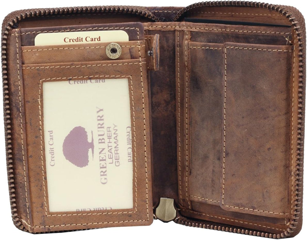 Greenburry Green Burry Zipper Wallet Brown, aus Leder, Herren, unisex Braun, Braun