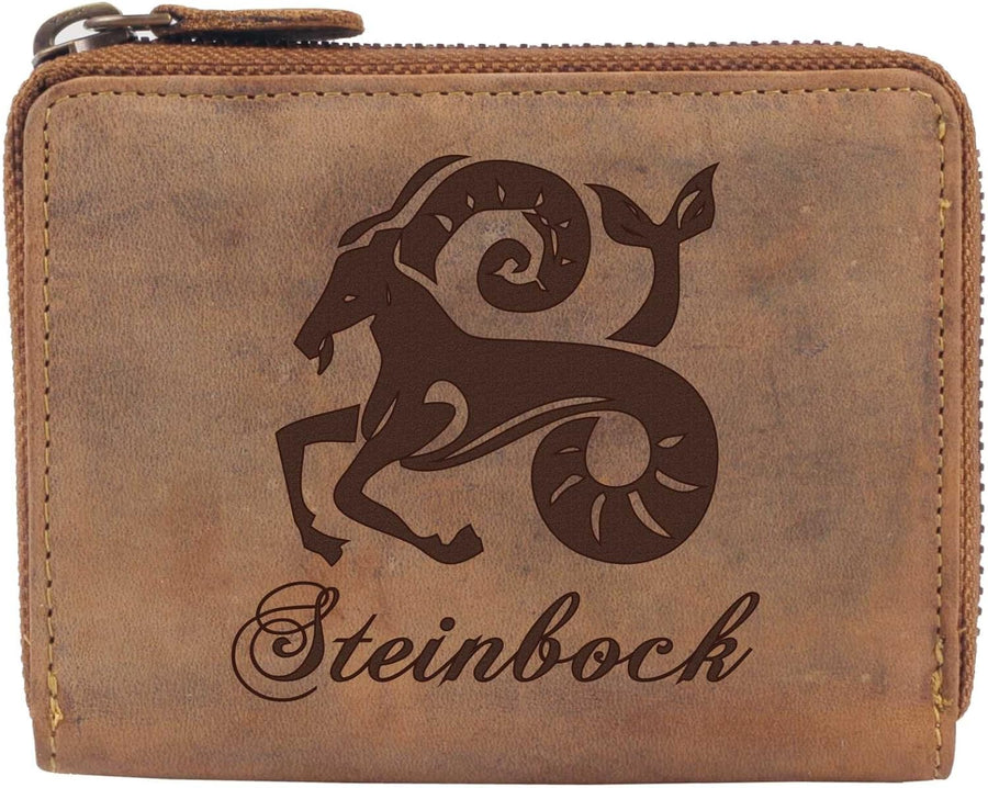 Greenburry Leder-Geldbörse mit Sternzeichen Steinbock Motiv I Damen-Portemonnaie mit Sternzeichen Mo
