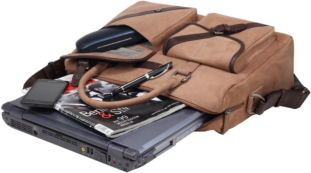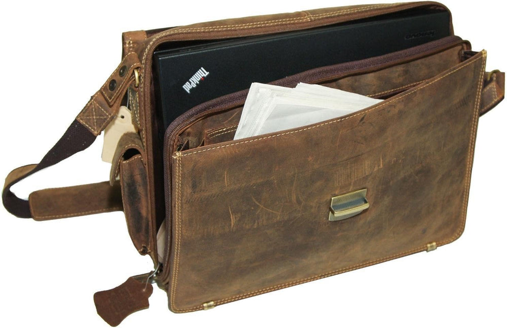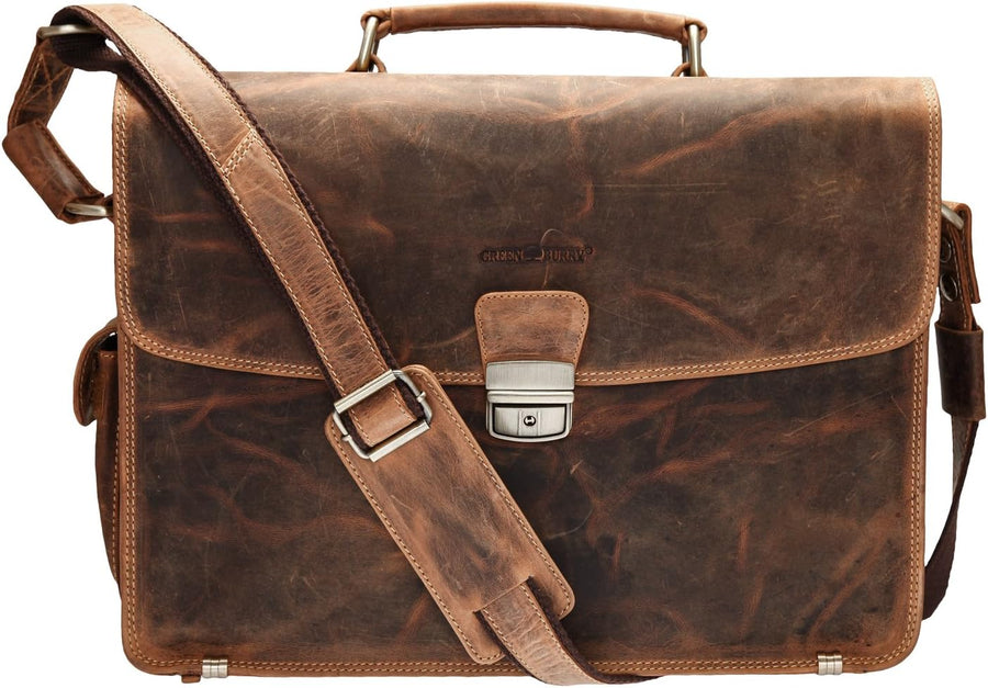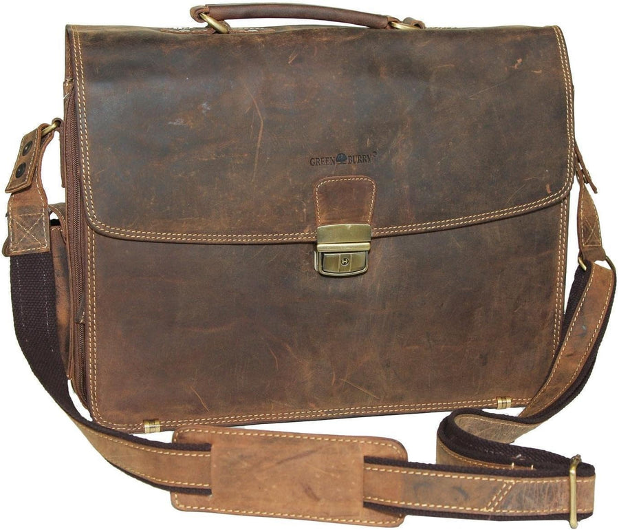 GreenBurry Laptoptasche 15 Zoll Rind-Leder Notebook-Tasche Laptopfach Akten 1718