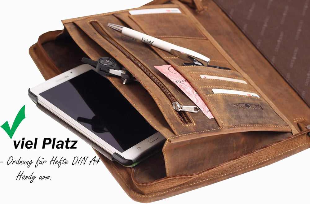 Greenburry Leder Schreibmappe A4 Braun, Braun