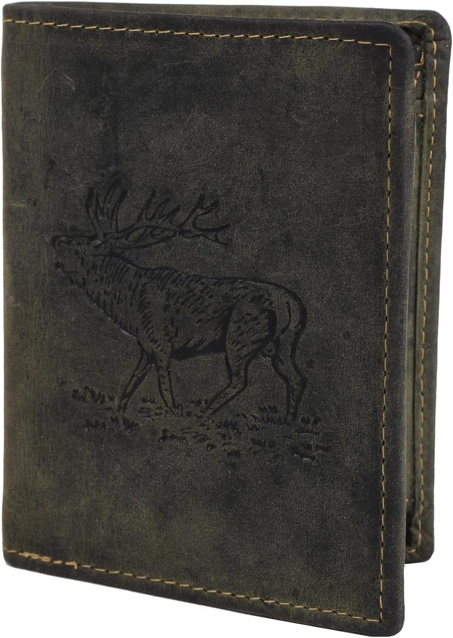 Greenburry Leder-Jagdscheinmappe mit Hirsch-Motiv - Leder Ausweisetui - 16,5x12x1 cm