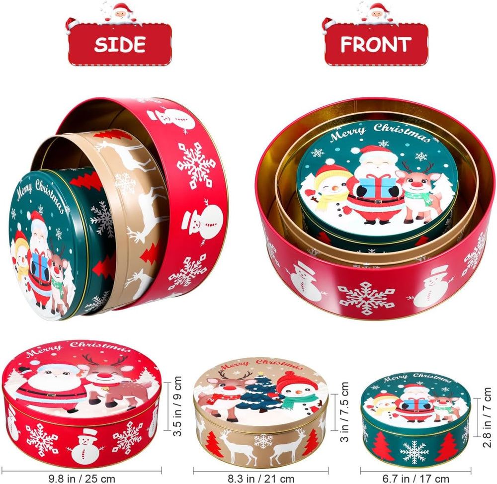 HEMOTON Weihnachtskeksdosen Set aus Metall, Rund Keksdosen mit Deckel für Weihnachten, Plätzchendose