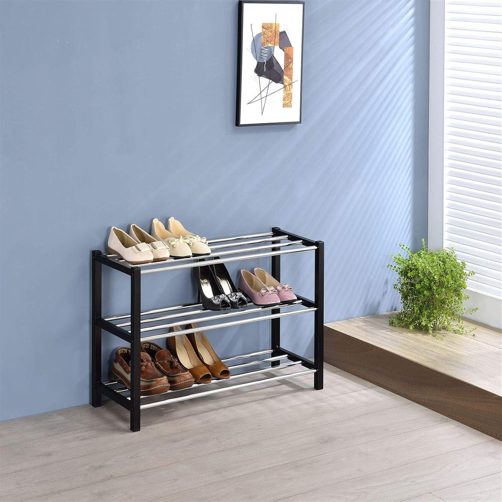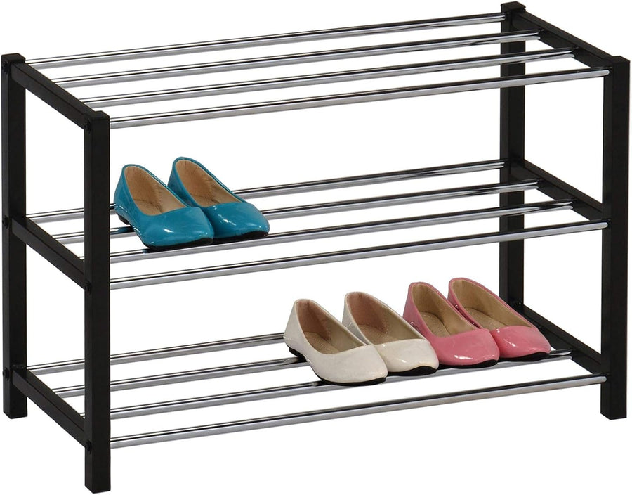 IDIMEX Schuhregal Dublin mit 3 Ablagen in schwarz. Robuste Schuhablage mit Metallrahmen, edel verchr
