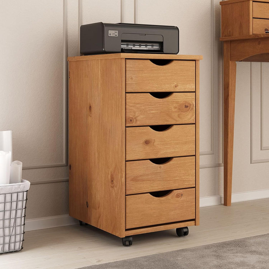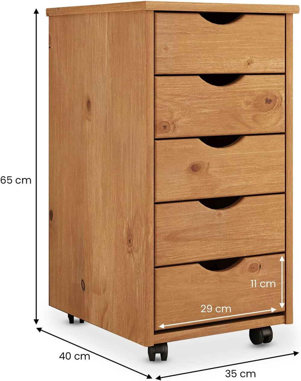IDIMEX Rollcontainer Lagos mit 5 Schubladen, Eiche Finish - Bürocontainer aus Massivholz, kompakte M