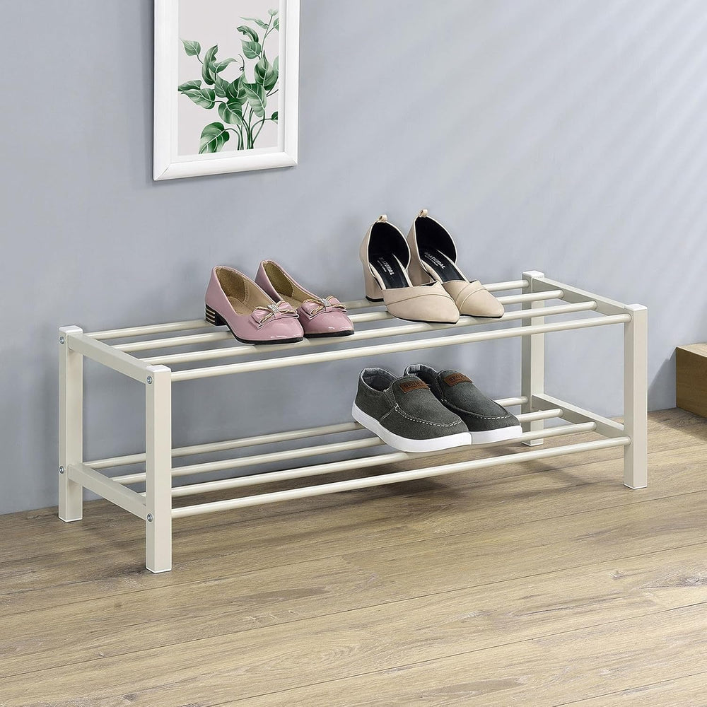 IDIMEX Schuhregal NAVAN Metall Beige, robuste Schuhbank mit 2 Ablagen, platzsparende Schuhkommode, i