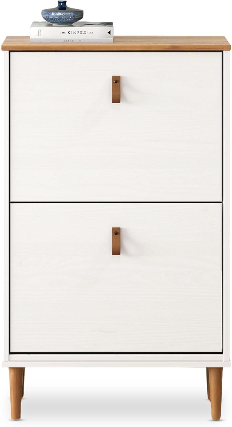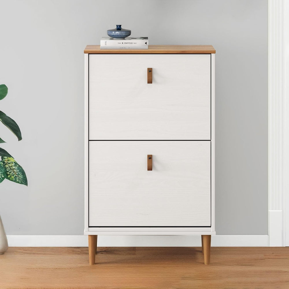 IDIMEX Schuhkipper MIKKA mit 2 Klappen, weiss/Eiche - schmaler Schuhschrank, platzsparende Schuhkomm