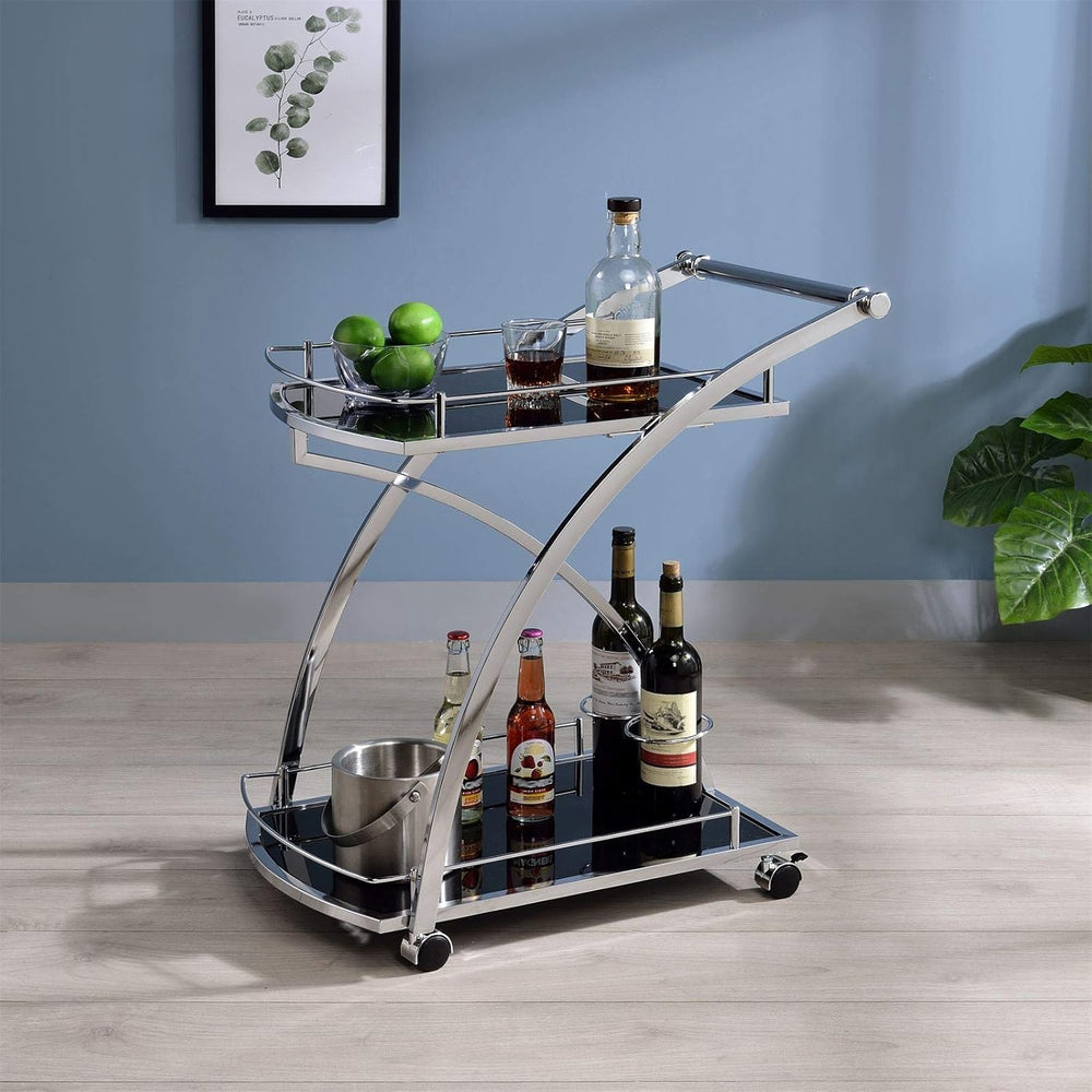 IDIMEX Servierwagen Beistellwagen Servicewagen Teewagen in schwarz/Chrom, 2 Sicherheitsglasböden