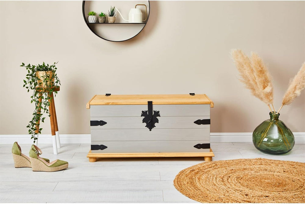 IDIMEX Truhe Tequila, schöne Aufbewahrungsbox aus Kiefer massiv grau/braun, praktische Holztruhe im