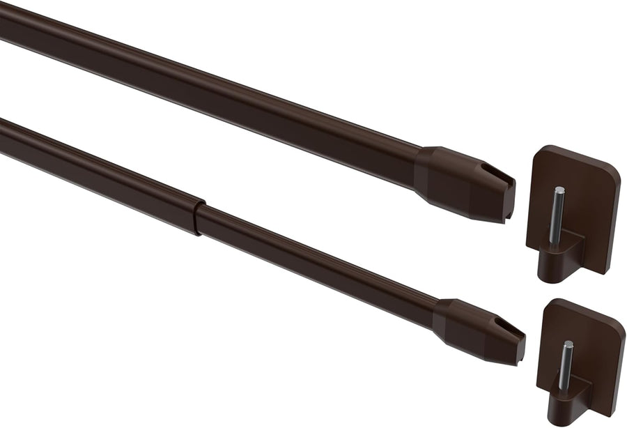 Interdeco Vitragestangen mit Klebehaken/Scheibenstangen Braun (2 Stück), ausziehbar 80-140 cm, 80-14