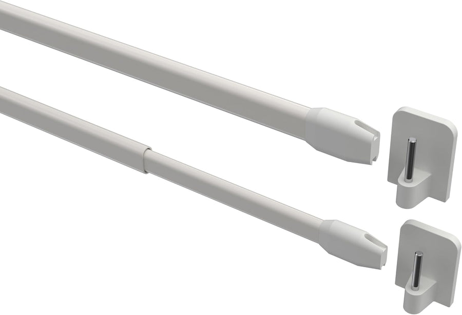 Interdeco Vitragestangen mit Klebehaken/Scheibenstangen Weiss (2 Stück), ausziehbar 80-140 cm, 80-14