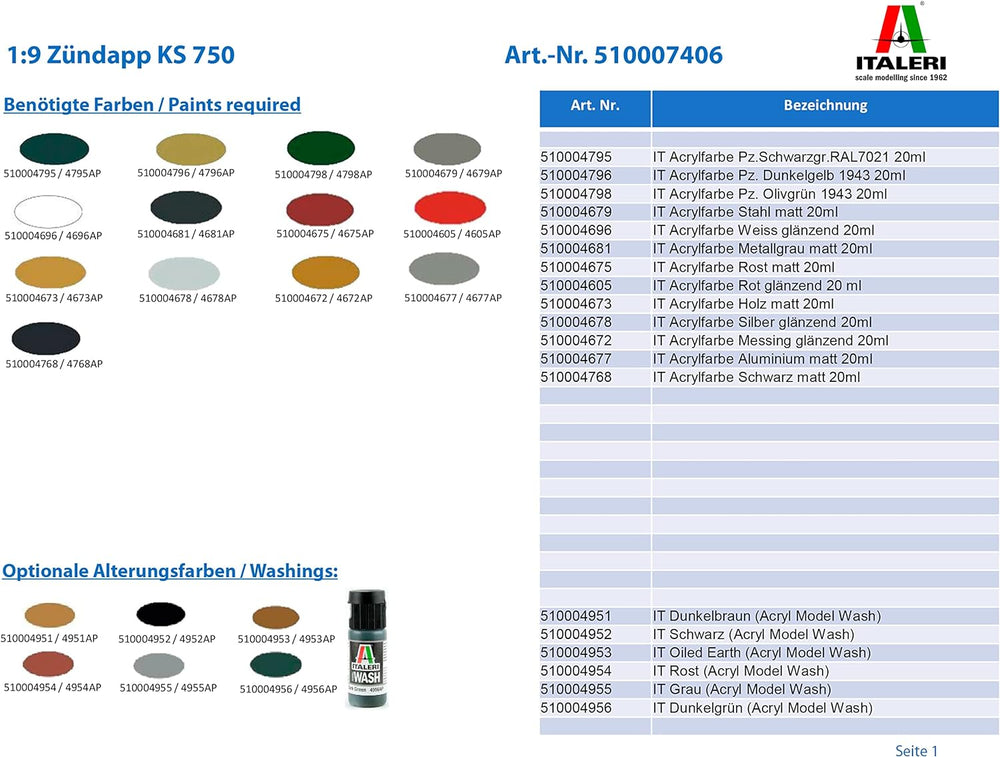 Italeri 7406 510007406-1:9 Zündapp KS 750, Modellbau, Bausatz, Standmodellbau, Basteln, Hobby, Klebe