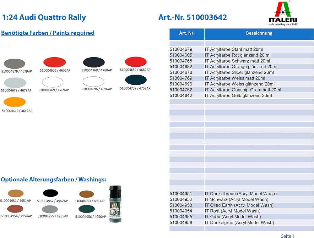 Italeri IT3642 3642S - 1:24 Audi Quattro Rally , Modellbau, Bausatz, Standmodellbau, Basteln, Hobby,