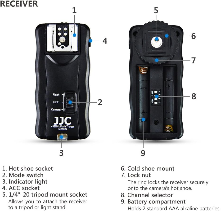 JJC Funk Blitz Studio Blitzauslöser Funkausloeser mit Fernauslöser 2 Empfaengern für Nikon D3300 D55