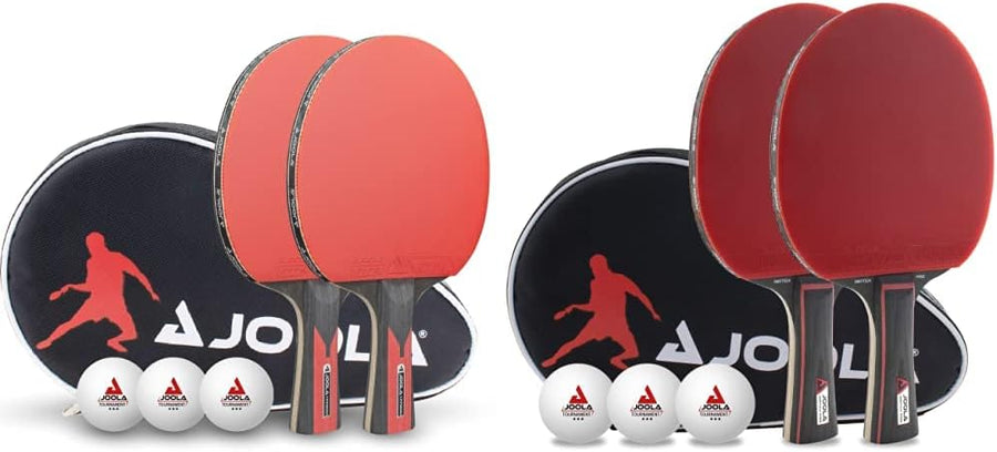 JOOLA Tischtennis Set Duo Carbon 2 Tischtennisschläger+3 Tischtennisbälle+Tischtennishülle, rot/schw