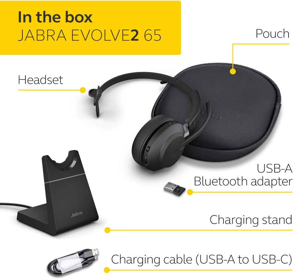 Jabra Evolve2 65 Wireless PC Headset with Charging Stand – Noise Cancelling UC Certified Mono Headph