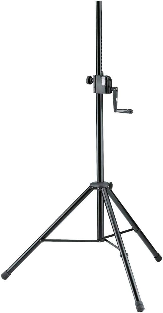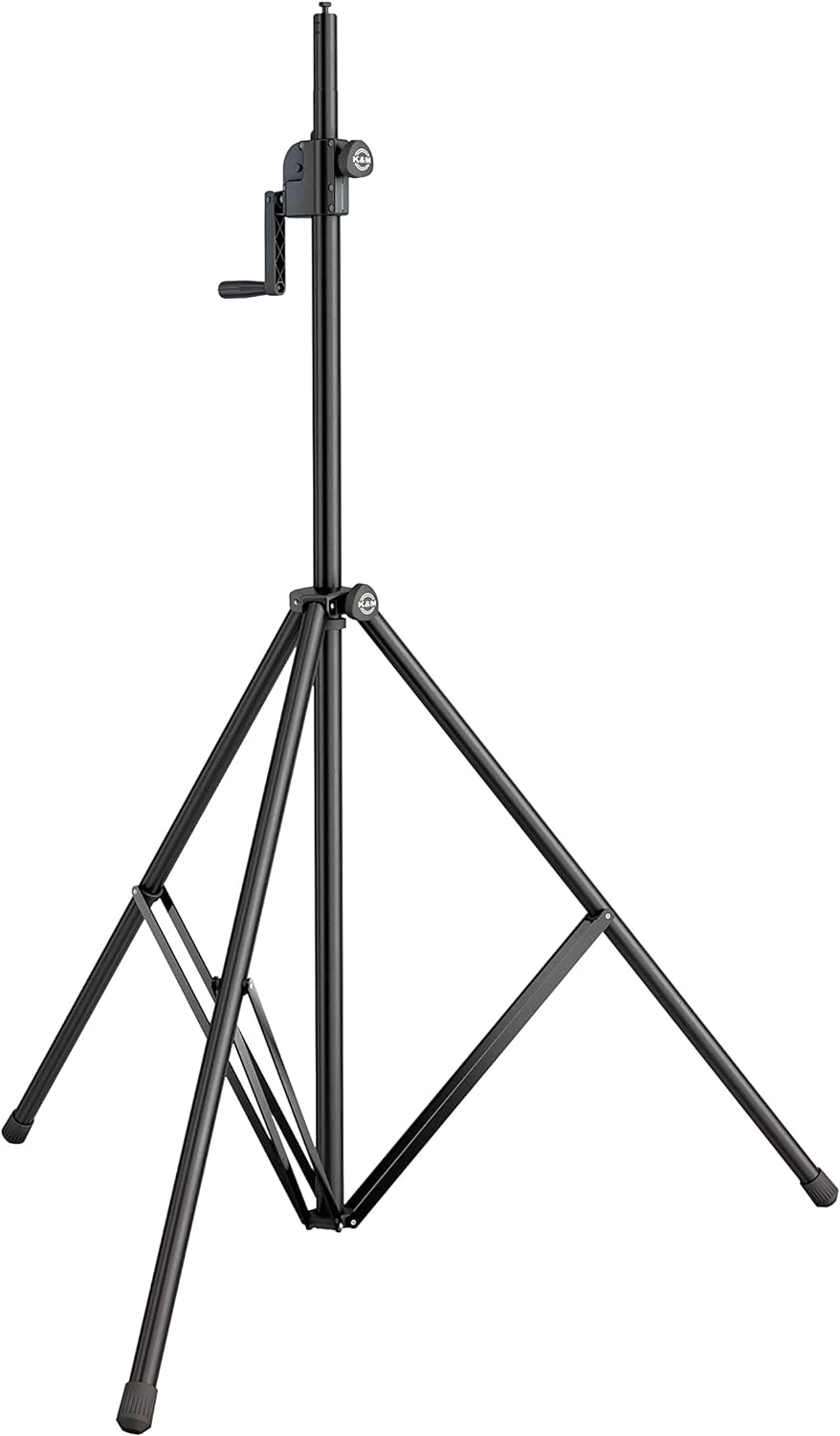 K&M 24615 Leuchten-/ Boxenstativ Schwarz Aluminium, Stahl - komfortable Kurbel, Auto Lock Verriegelu