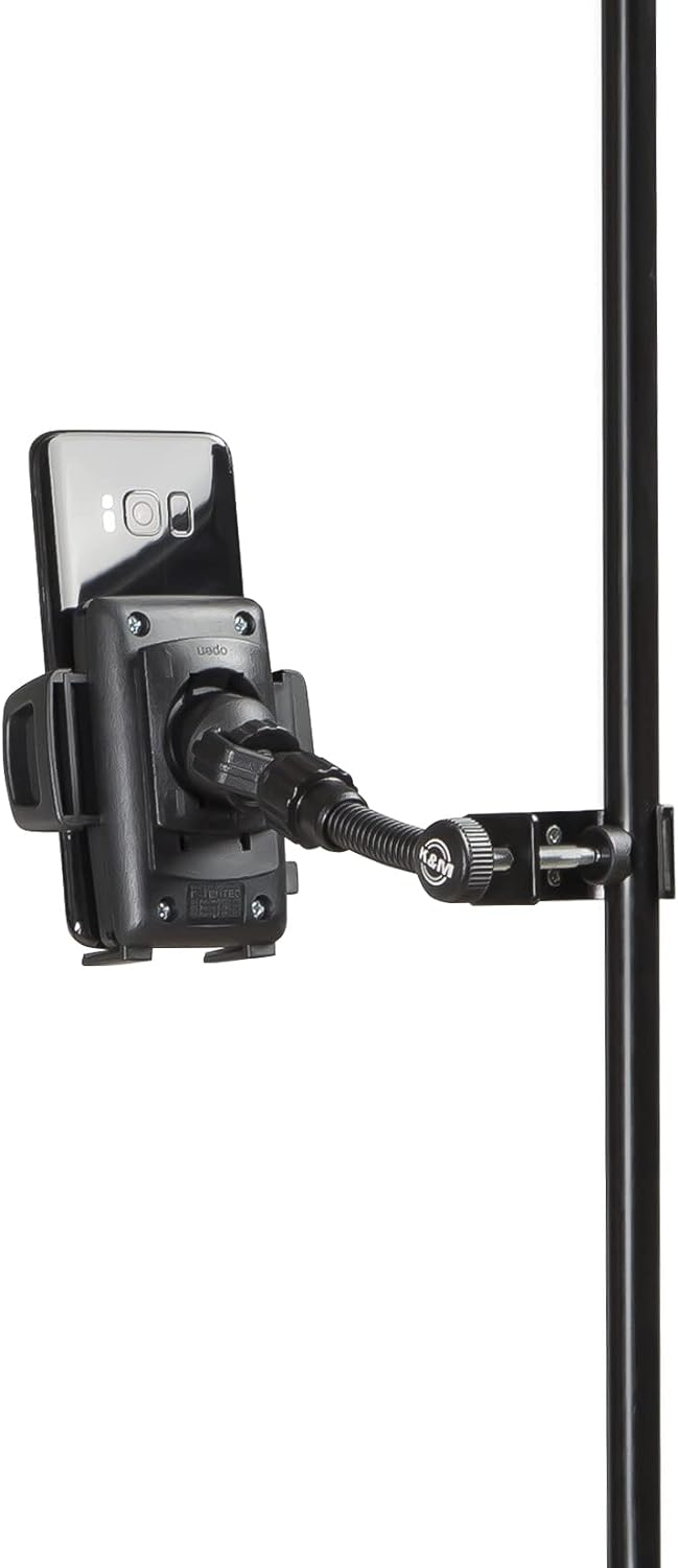 K&M 19747 Smartphone-Halter Schwarz, Kunststoff - 360° drehbar - flexible Klemmbacken - Für Stativ ,