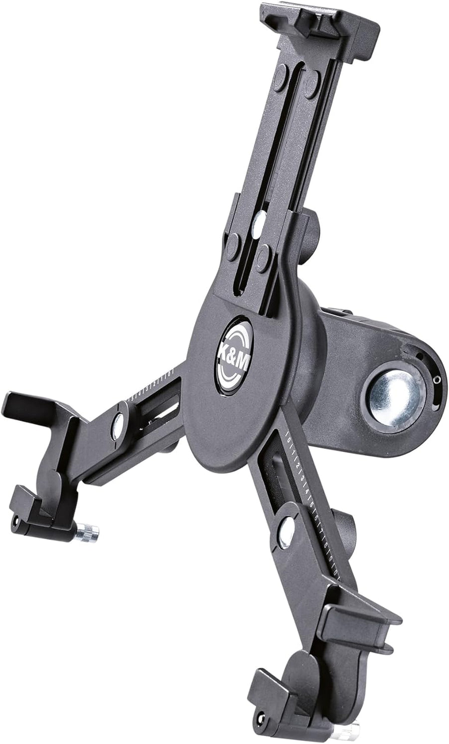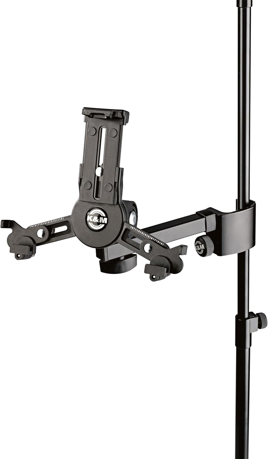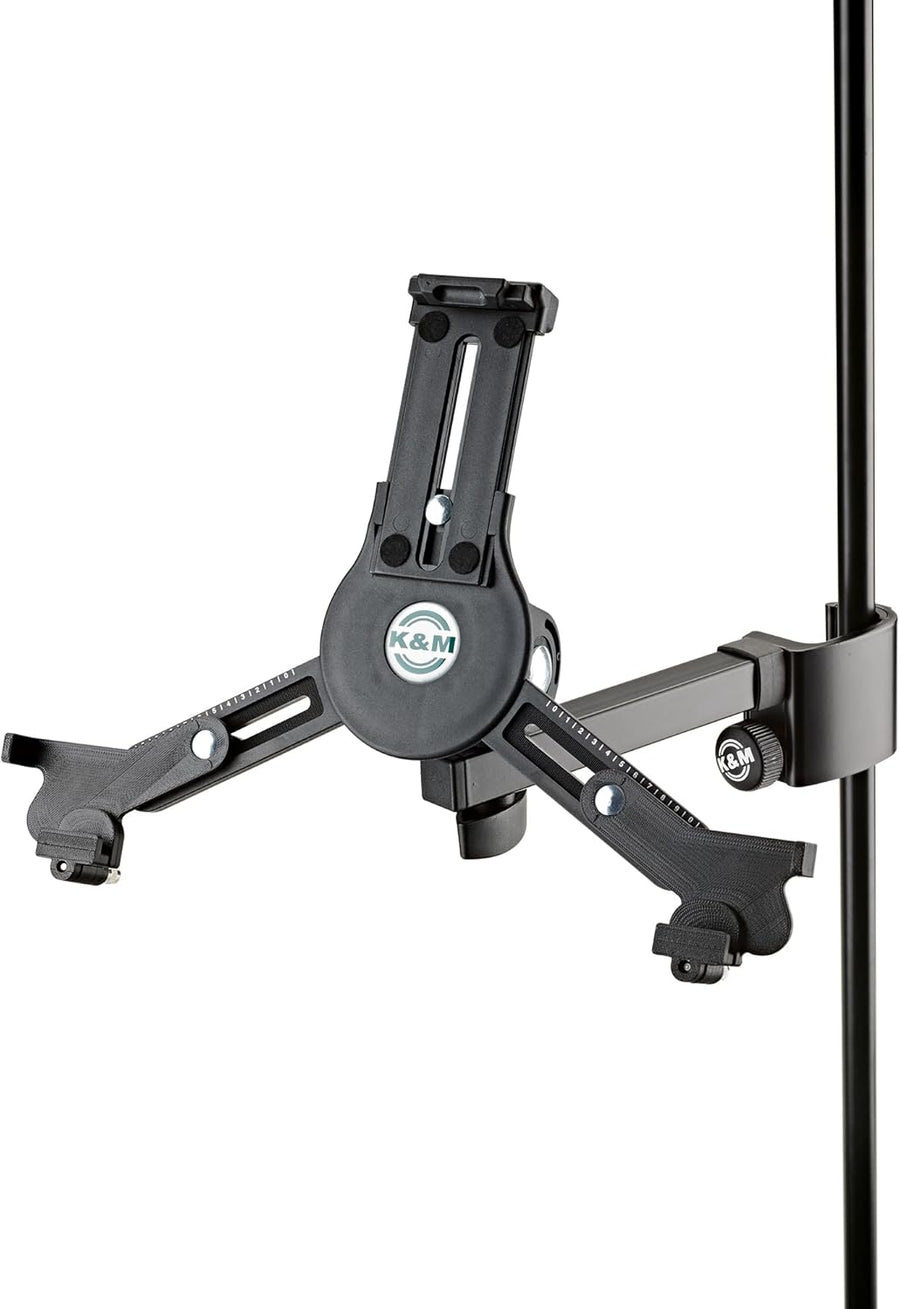 K&M 19796 Tablet-PC-Halter Schwarz - Zubehör für Mikrofon-Stativ e, neigbar- flexibel geeignet für g
