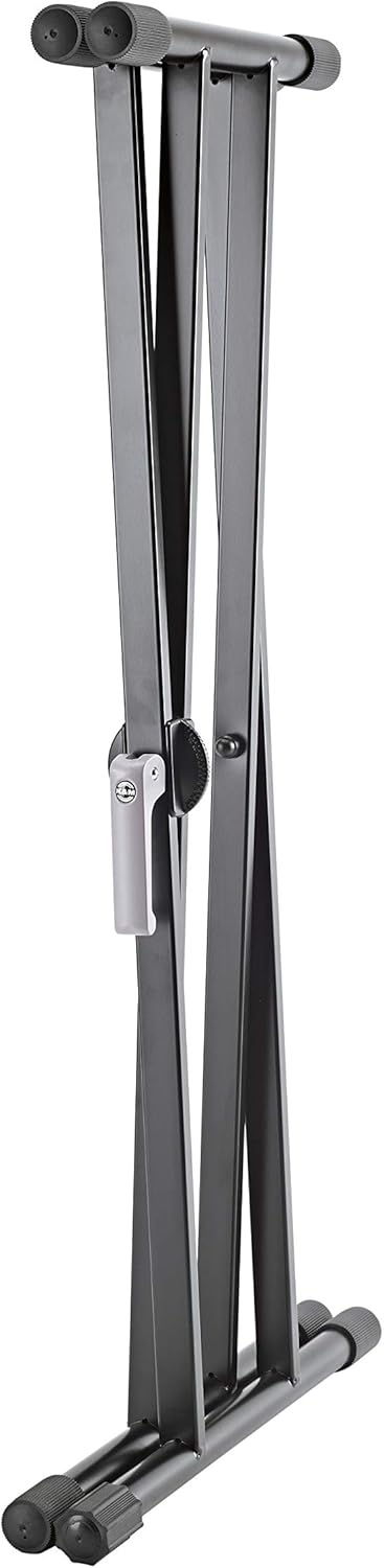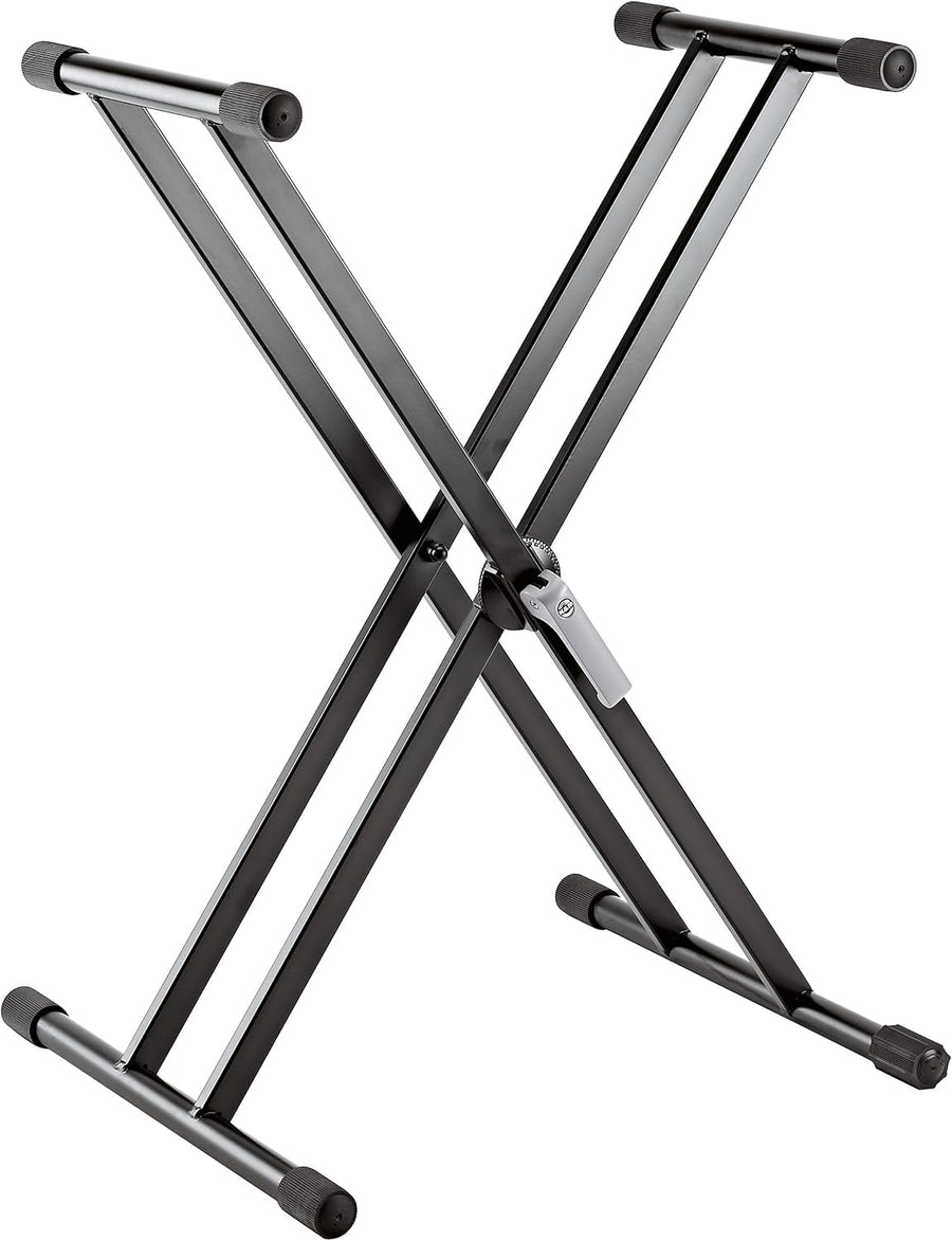 K&M 18997 Keyboardständer Schwarz aus Aluminium - leichter X-Ständer - mit Klemmhebel, Gummiauflagen