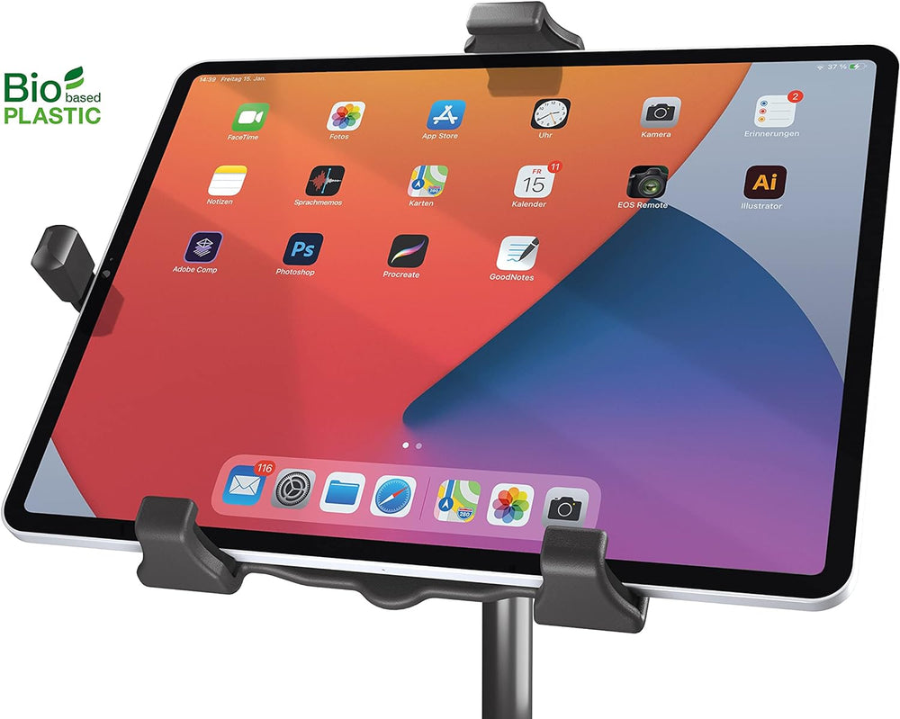 K&M 19765 Tablet-PC-Halter Biobased Kunststoff - Zubehör für Mikrofon-Stative, neigbar - geeignet fü