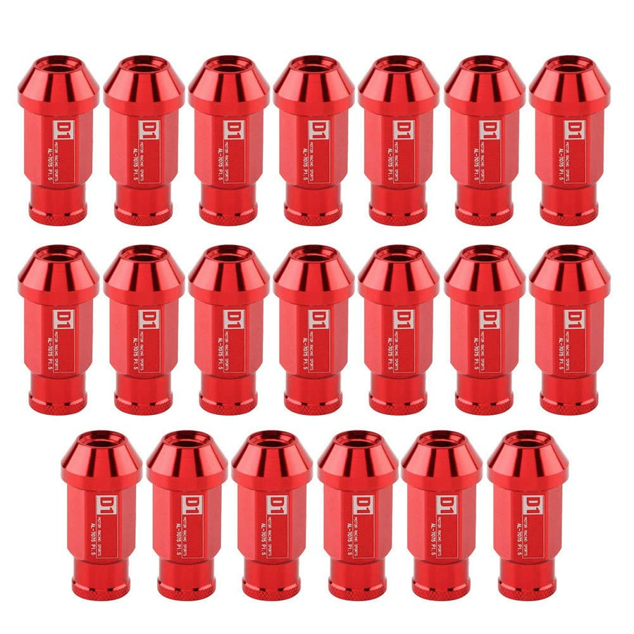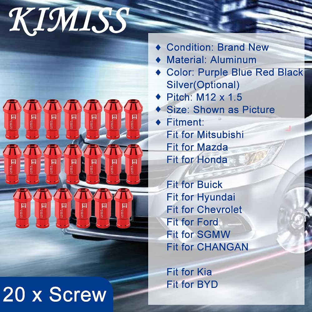 KIMISS Aluminium Autoreifenschraube, 20Pcs Radmuttern sichern Racing Radmutter M12X1.5 (Rot)