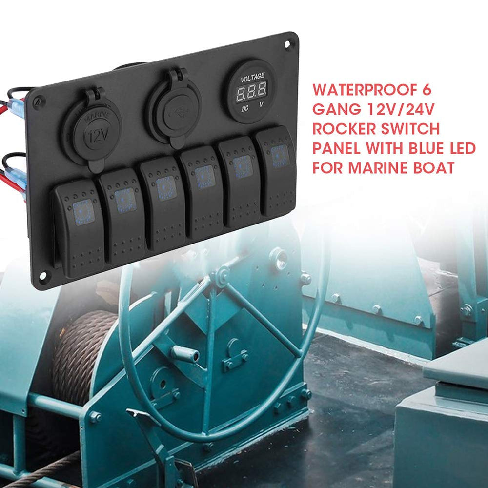 KIMISS ABS 6 Gang Wasserdichte ON-OFF Kippschalter Panel Dual USB Buchse Ladegerät LED Voltmeter 12