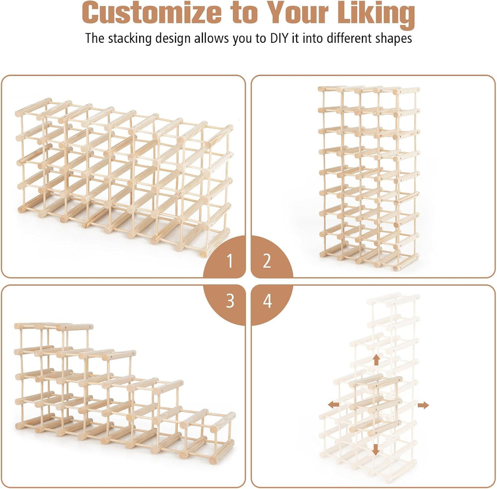 KOMFOTTEU Weinregal für 40 Flaschen, Flaschenregal aus Holz, Flaschenständer erweiterbar, Weinflasch