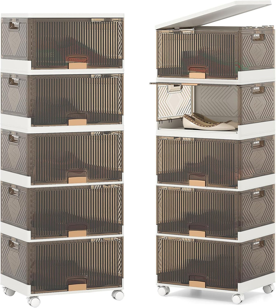 KOMFOTTEU Stapelbare Schuhboxen mit 5/6 Ebenen, Aufbewahrungsbox mit Klapptüren und feststellbaren R