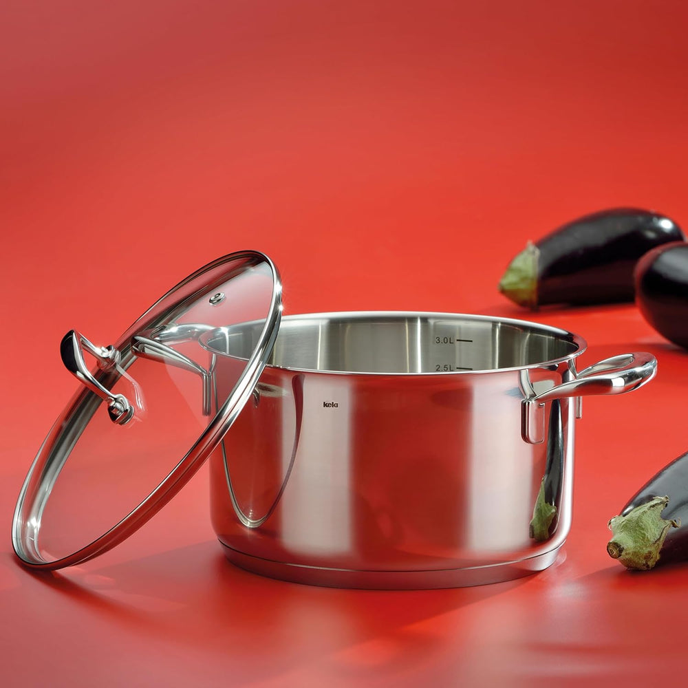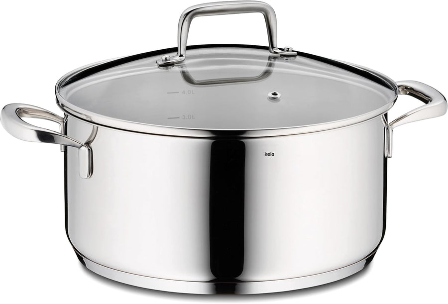 kela Bratentopf 24 cm FLAVORIA, Kochtopf Induktion 4,6 L, Glasdeckel mit Dampfauslassventil, Innensk
