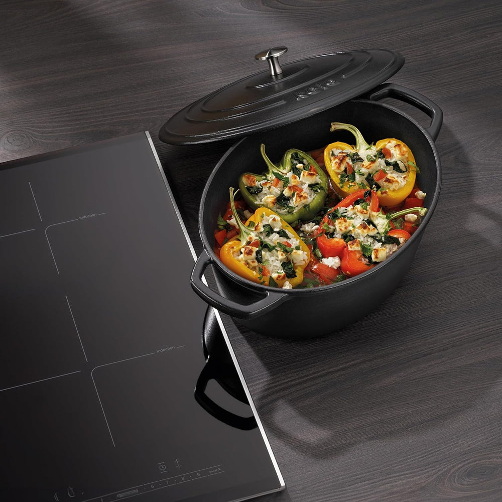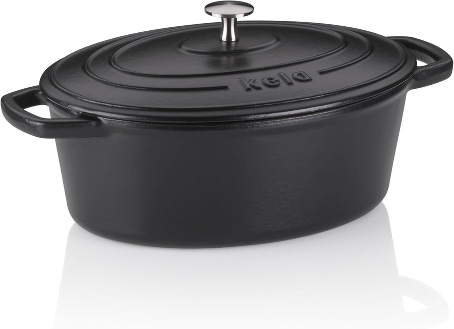 kela Bräter Gusseisen oval 4 Liter, Dutch Oven CALIDO, Induktion Gussbräter mit Deckel, Gusseisen To