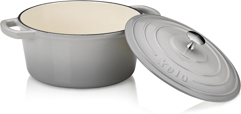 kela Bräter Calido, Ø 21 cm, 2,5 L, Gusseisen, hellgrau, rund, Allherdboden, emailliert, hitzebestän