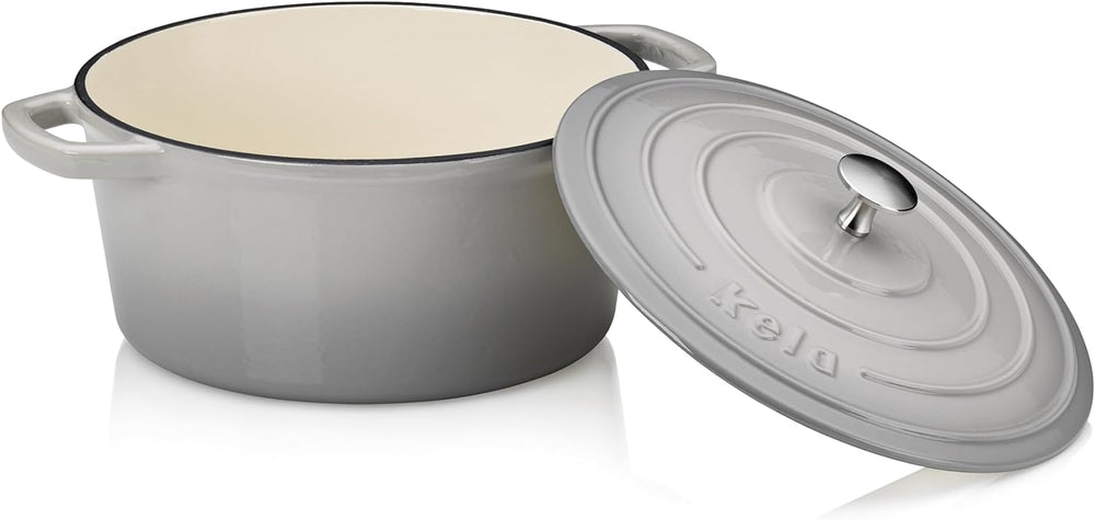 kela Bräter Calido, Ø 26 cm, 4,6 L, Gusseisen, hellgrau, rund, Allherdboden, emailliert, hitzebestän