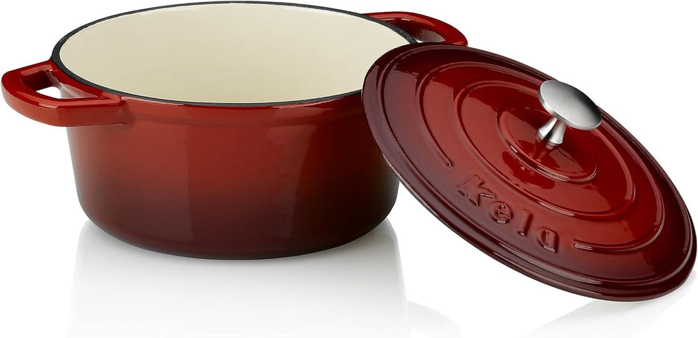 Kela Bräter Calido Gusseisen rot Rund 10cm 21cmØ 2,5l, 21 cm, Rot