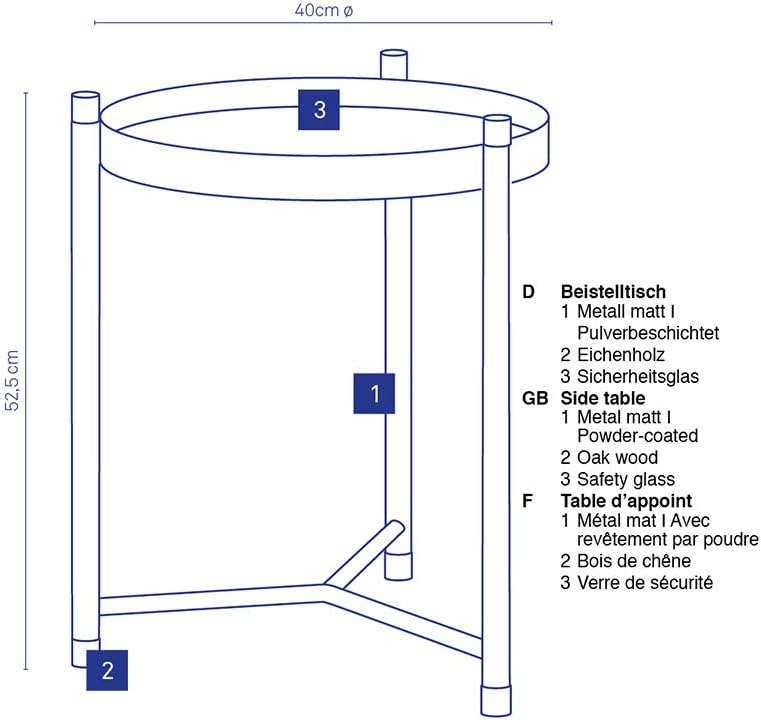 Kela Beistelltisch, Oak, Pulverbeschichtetes Metall mit Eichenholz und Glas, Ø 40 cm, 24266, Schwarz