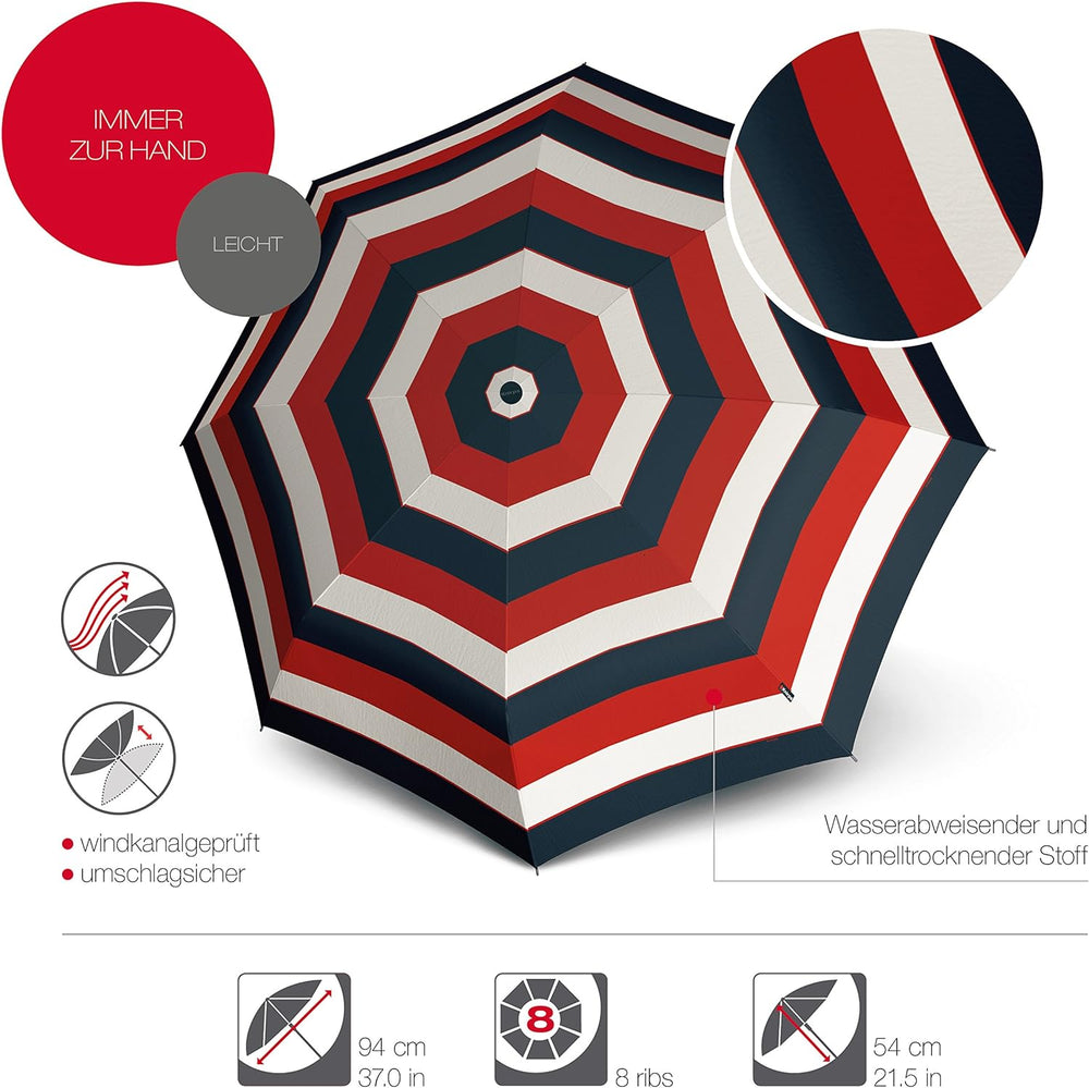 Knirps T.010 Taschenschirm Manual Stripe Red - inkl. Futteral im Schirmdesign - kleines Packmass - E