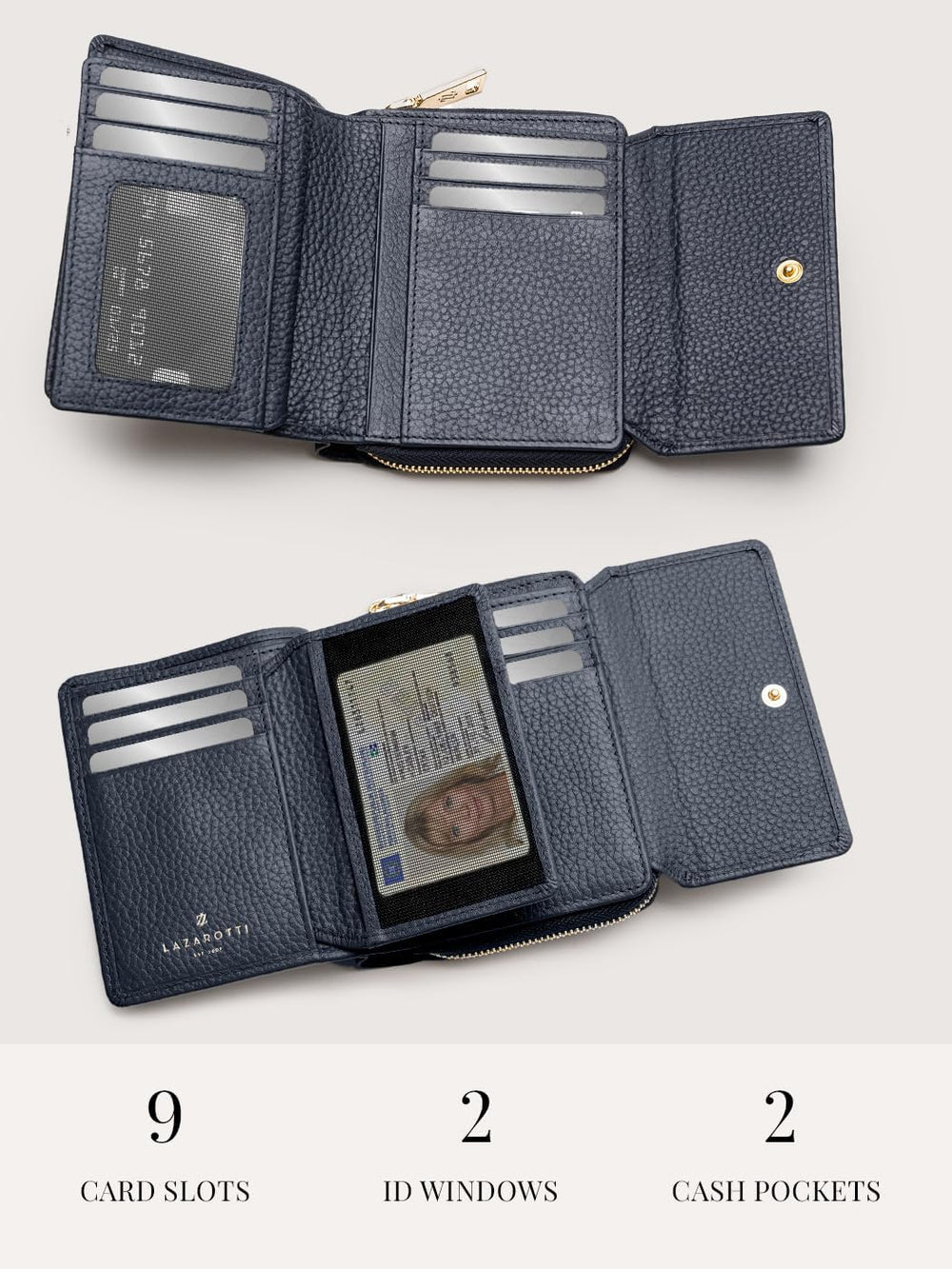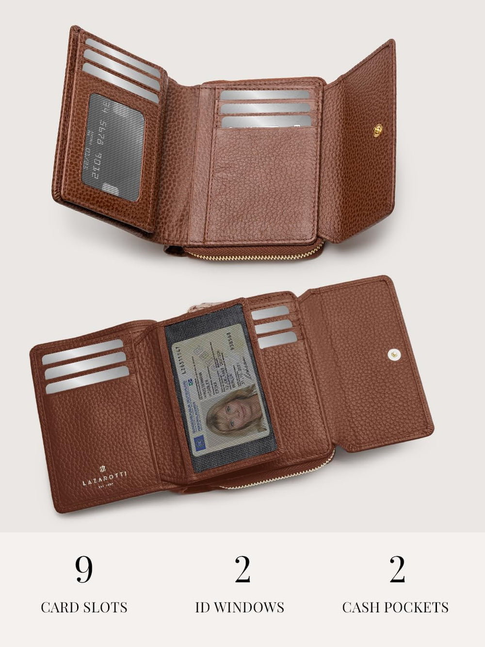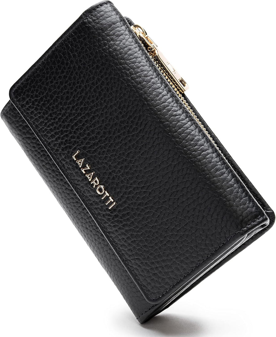 Lazarotti Bologna mittelgrosse Leder Geldbörse Damen | mit Druckknopf, Reissverschlussfach, 9 Karten