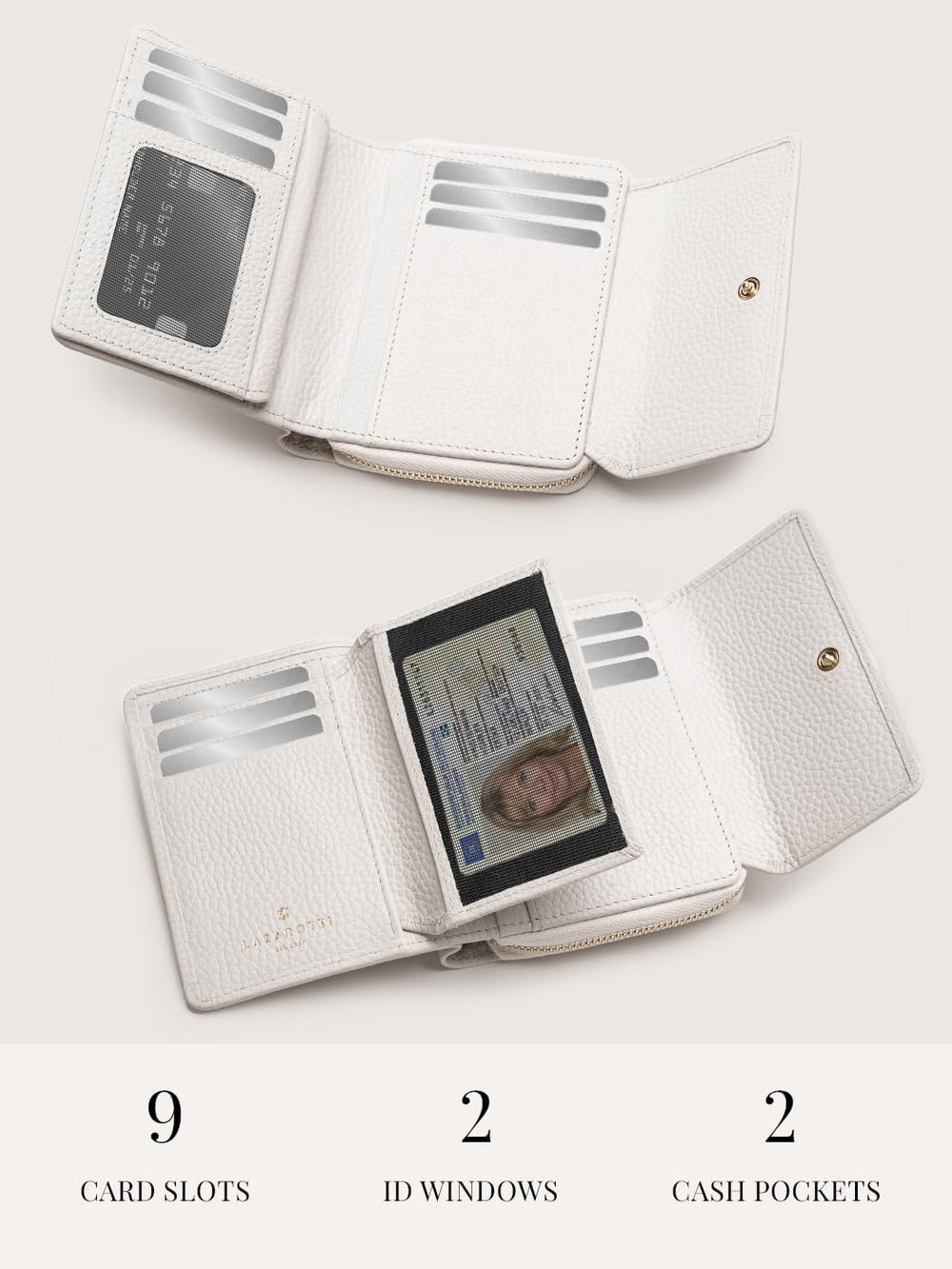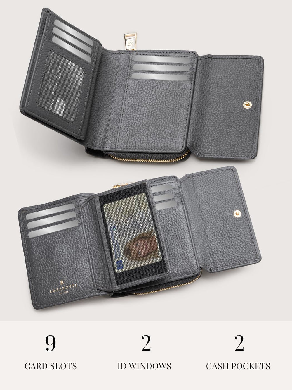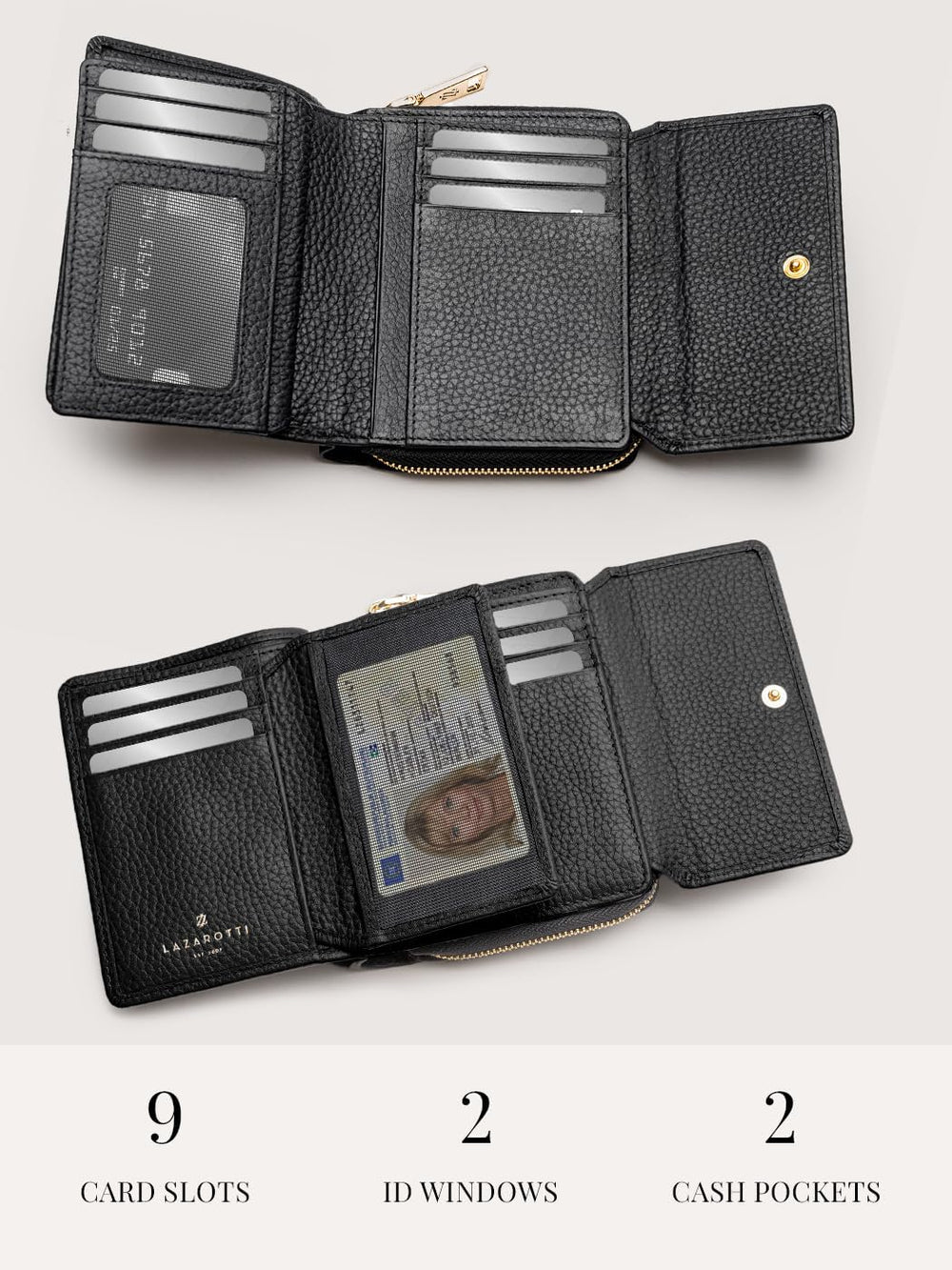 Lazarotti Bologna mittelgrosse Leder Geldbörse Damen | mit Druckknopf, Reissverschlussfach, 9 Karten