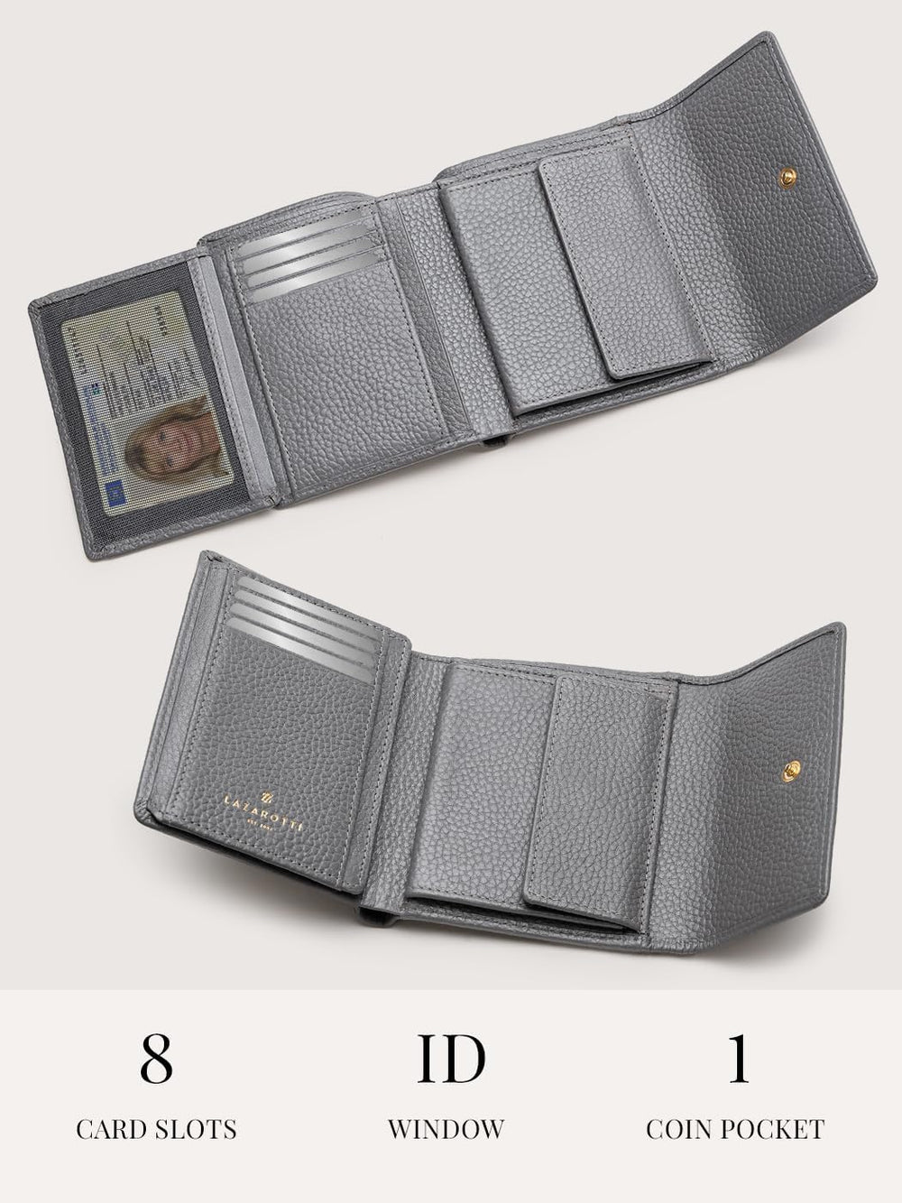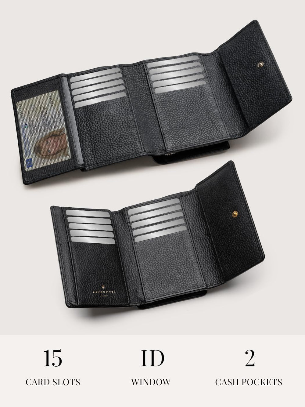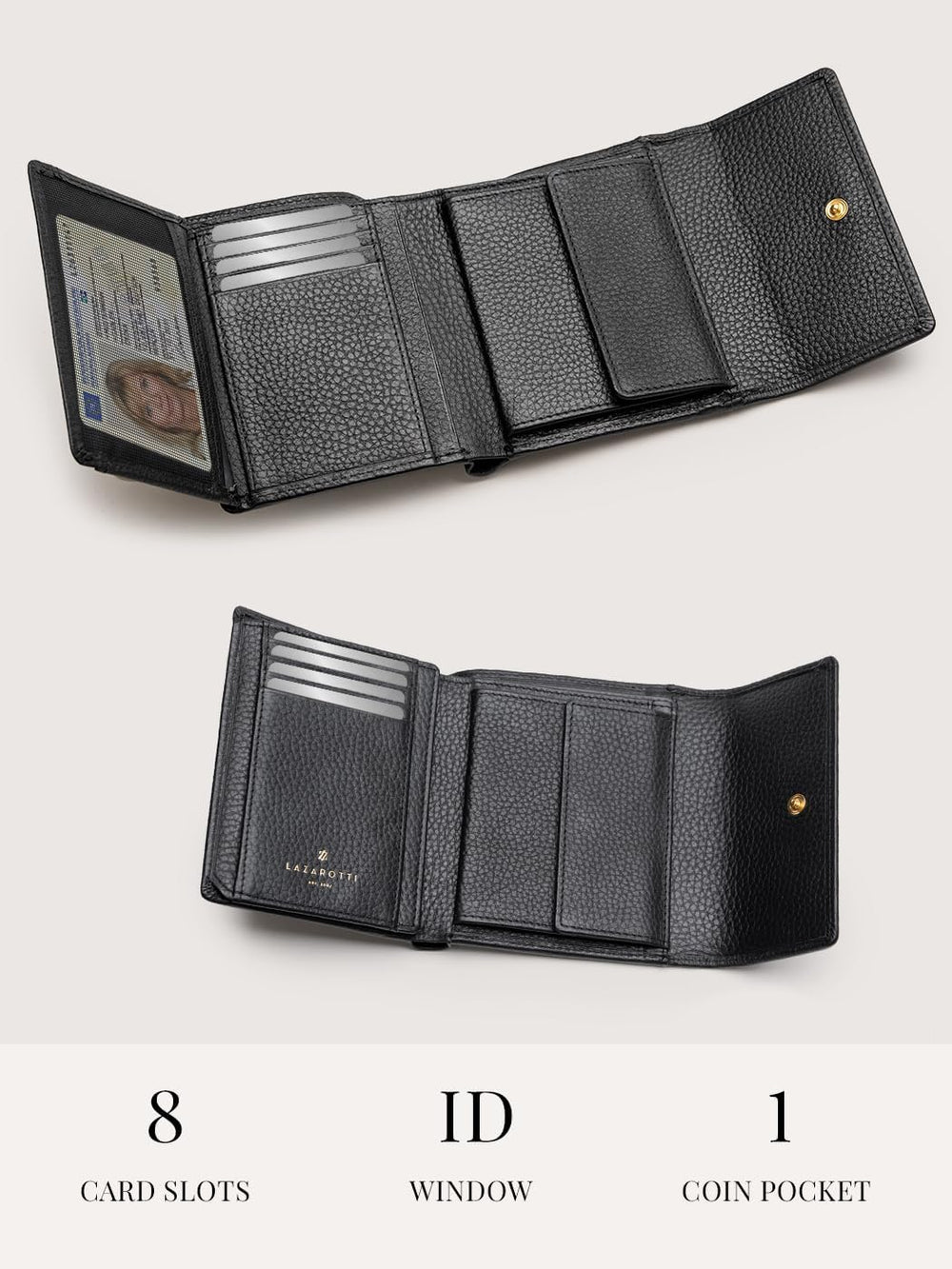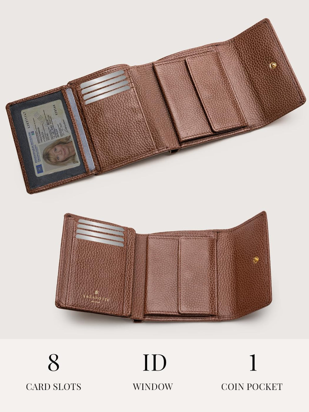 Lazarotti Bologna mittelgrosse Leder Geldbörse Damen | mit Druckknopf, 8 Kartenfächer, Münzfach, RFI