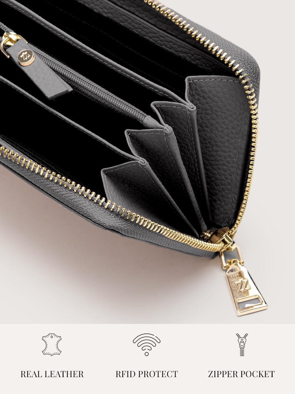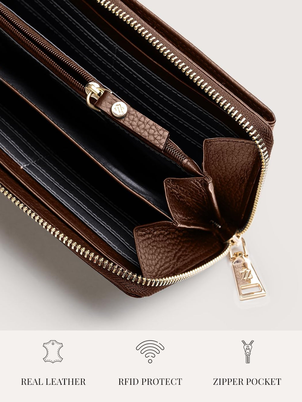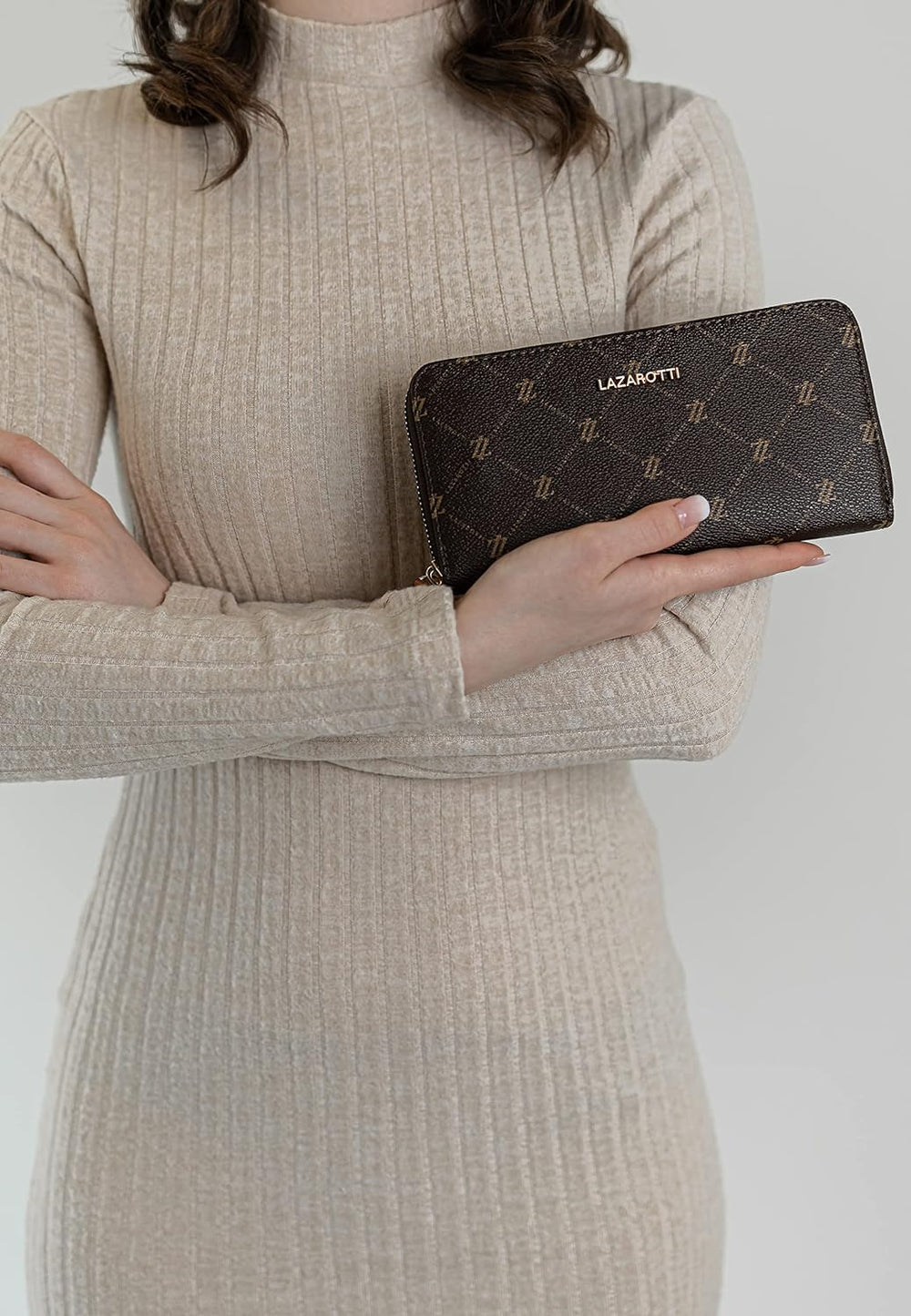 Lazarotti Bologna XL Leder Damen-Geldbörse | grosses Reissverschlussfach, 15 Kartenfächer, RFID-Schu