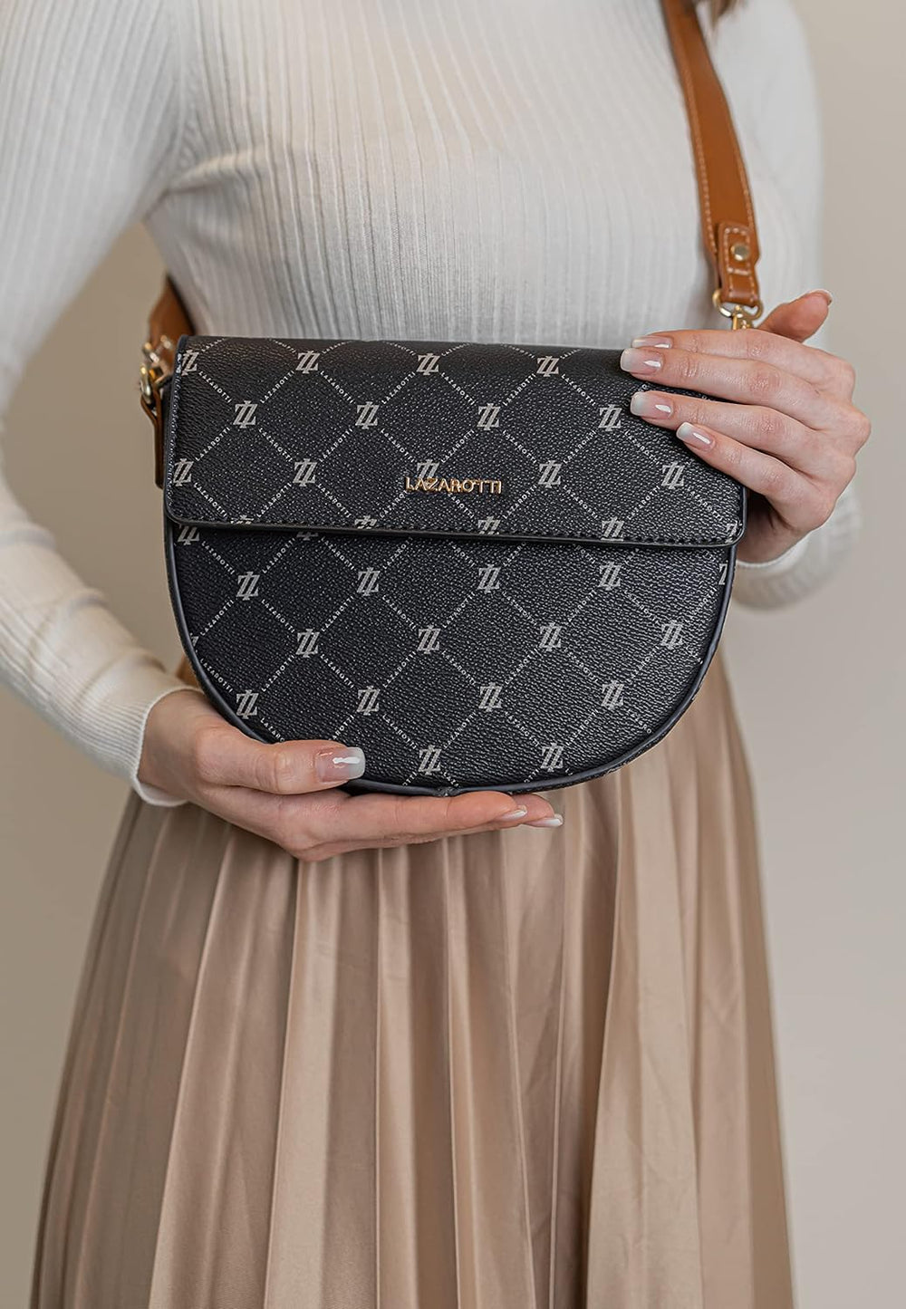 Lazarotti Palermo Umhängetasche Damen | verstellbarer Schultergurt | Halfmoon Bag 21cm Schwarz, Schw