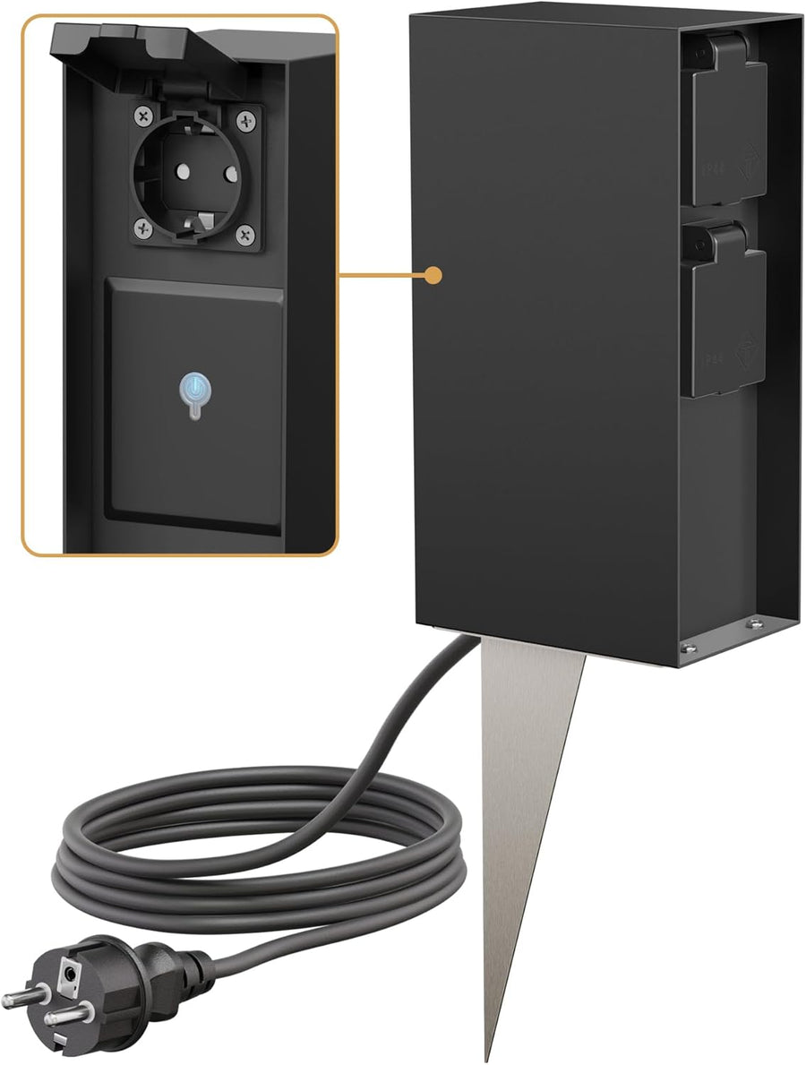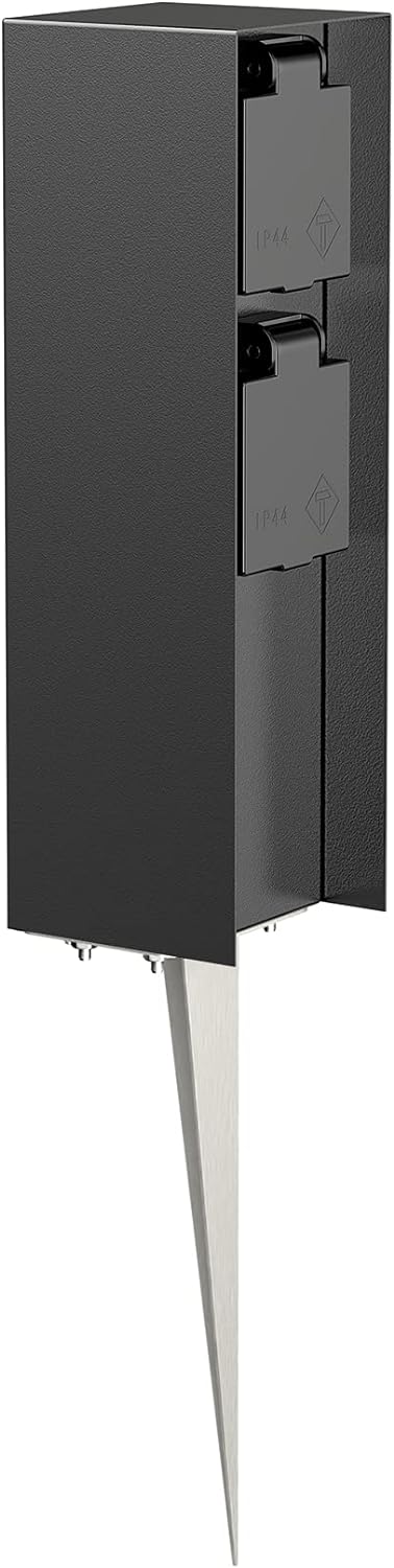 ledscom.de Garten-Steckdosen-Säule POMI mit Erdspiess für aussen, IP44, 2-Fach, schwarz, eckig, 23cm