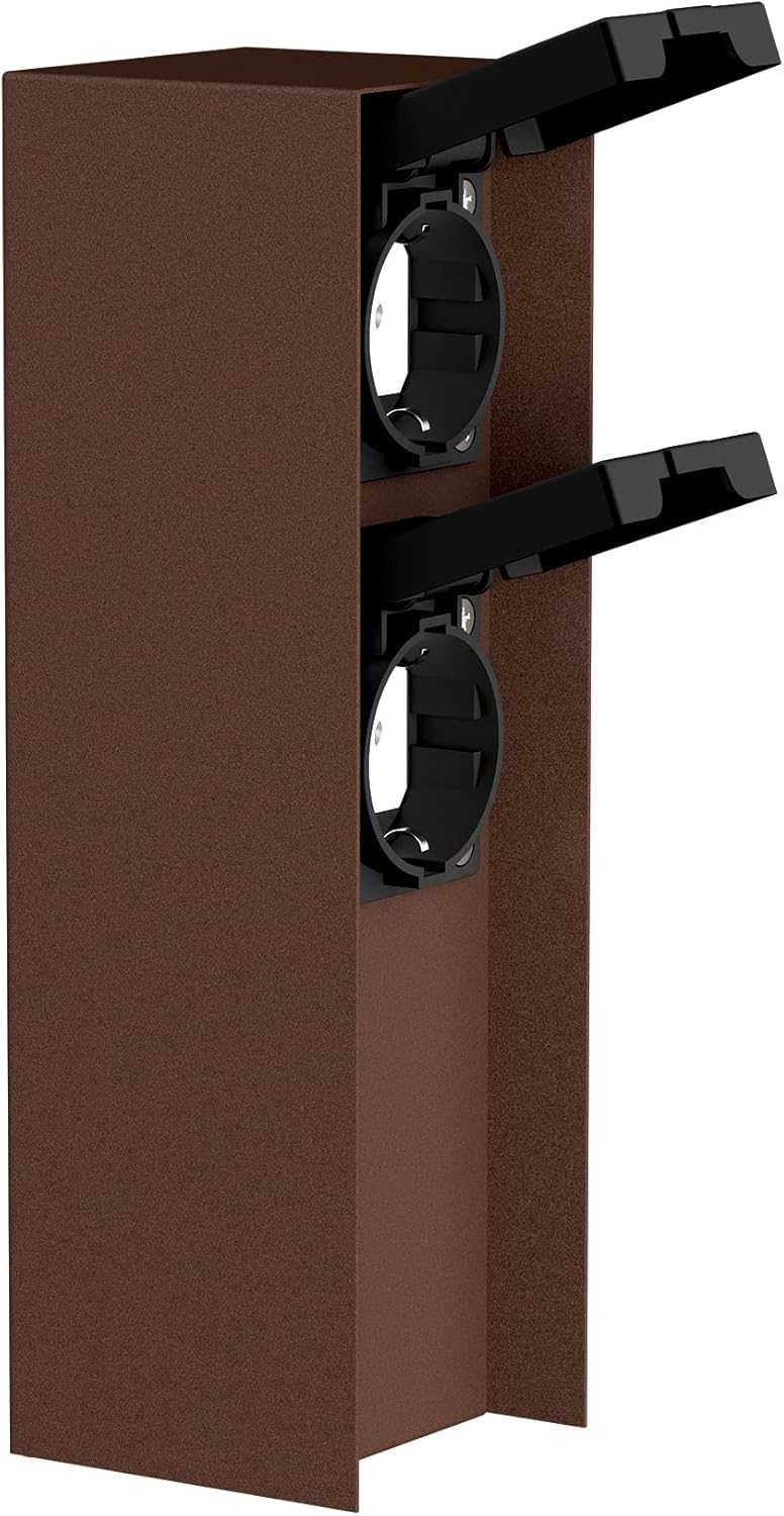 ledscom.de Garten-Steckdosen-Säule POMI mit Erdspiess für aussen, IP44, 2-Fach, braun, eckig, 23cm 1